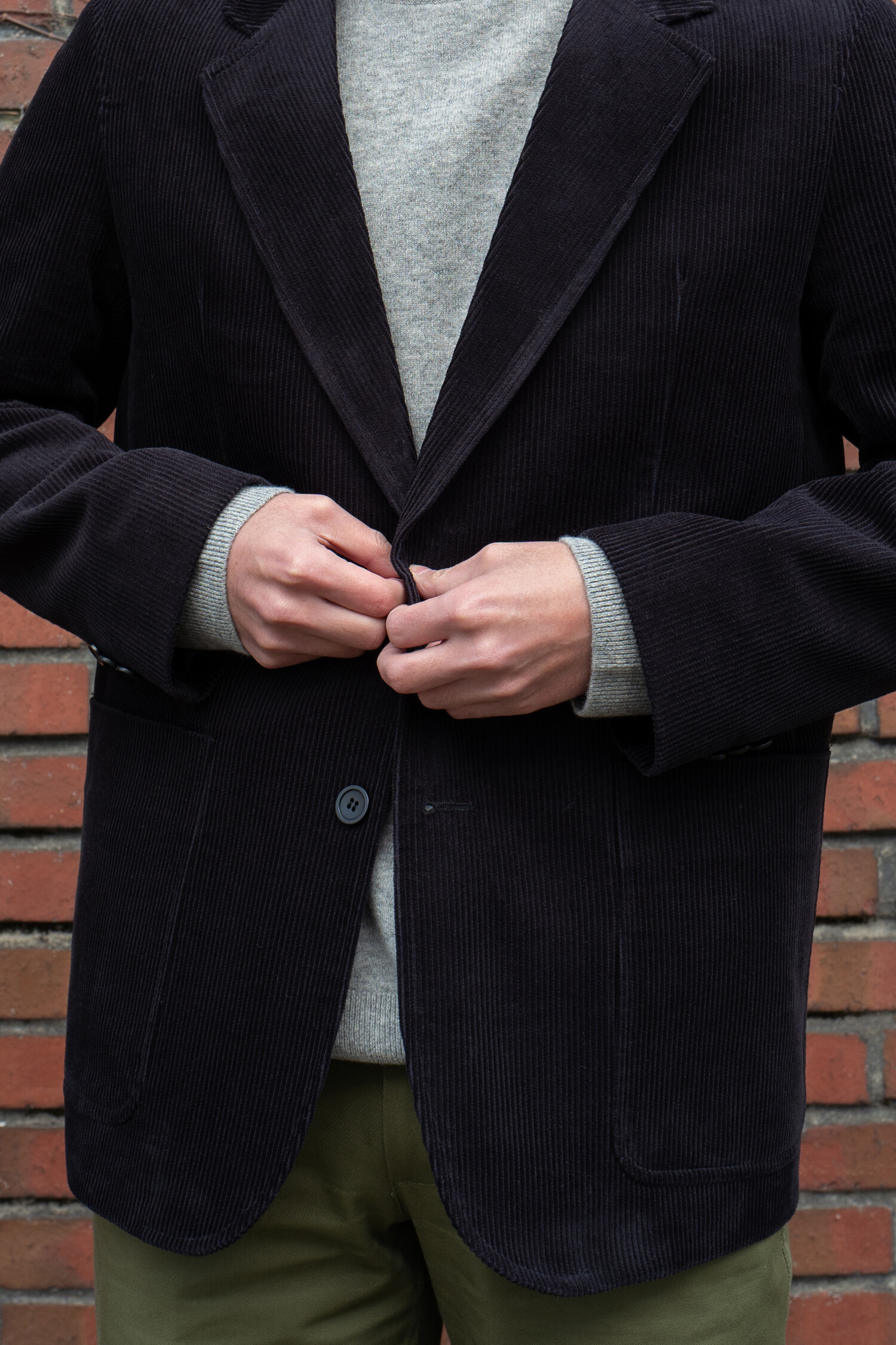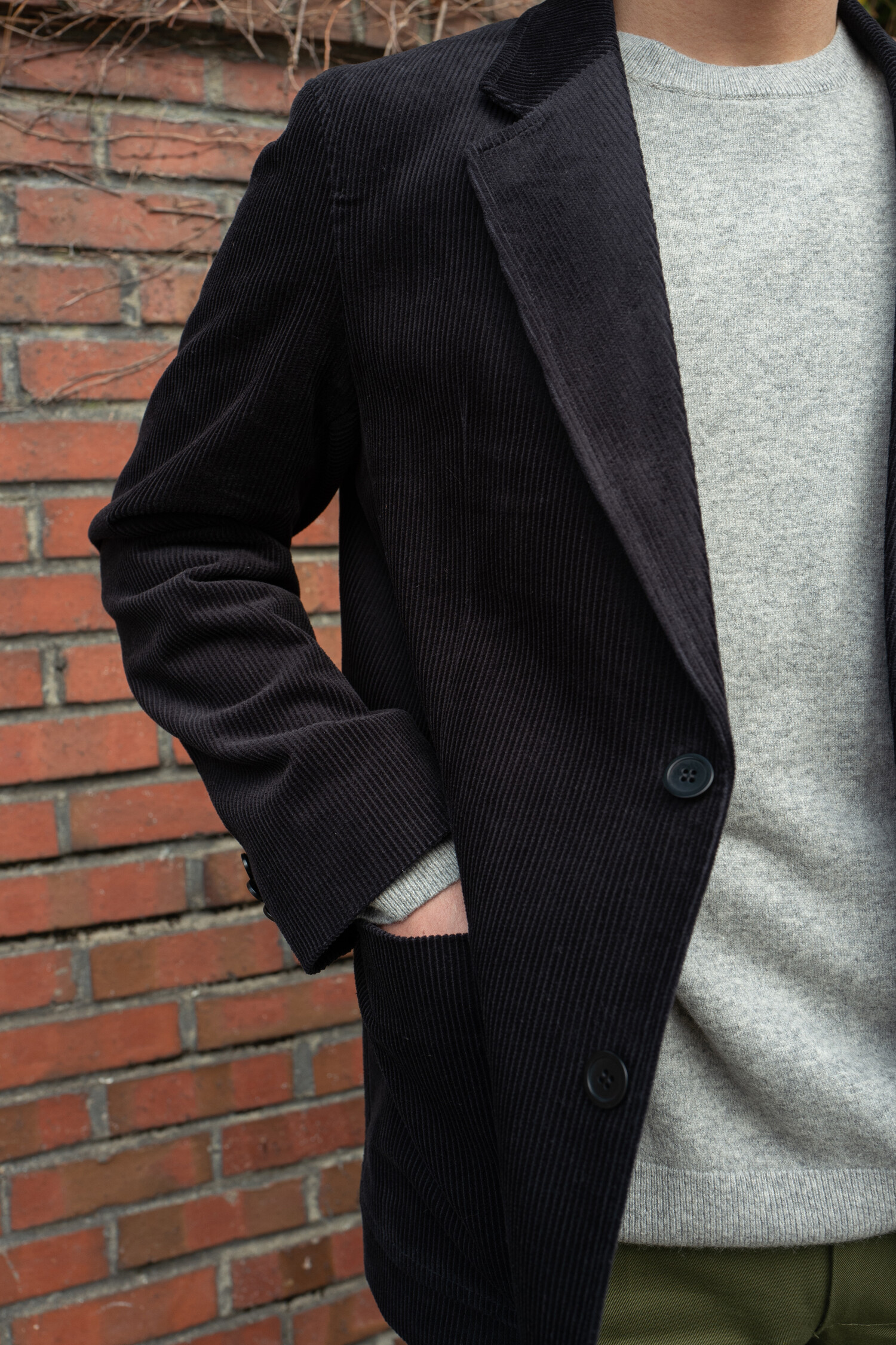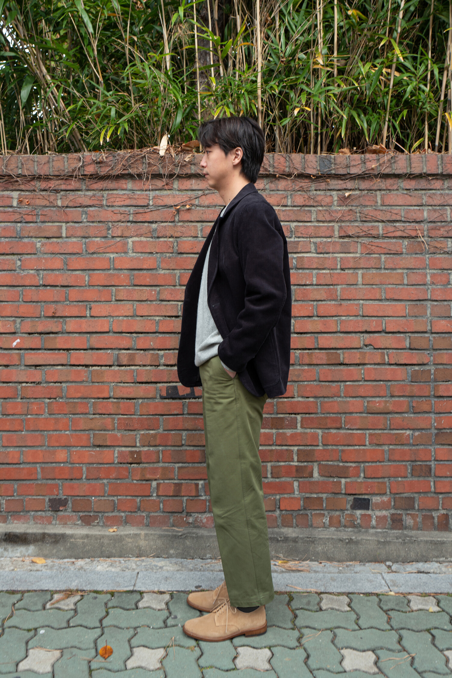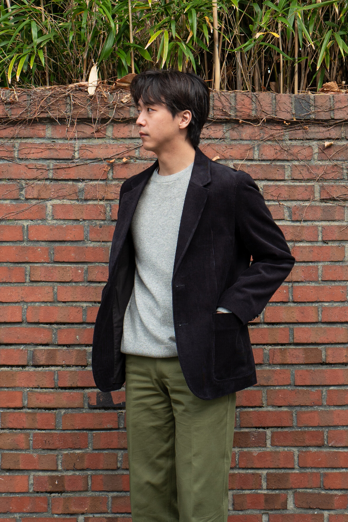 코듀로이는 소재가 주는 매력이 있습니다. 거칠고 투박한 듯 하면서도 따뜻한 느낌이 있습니다. 이러한 특징을 살려 편하게 입을 수 있는 자켓을 만들었습니다. 버튼은 두 개면 충분하다 싶었고 기획 의도에 맞게 벤트와 같은 디테일들은 의도적으로 덜어냈습니다. 심심한 듯 하지만 그 맛에 힘주지 않고도 멋스럽게 착용이 가능합니다.