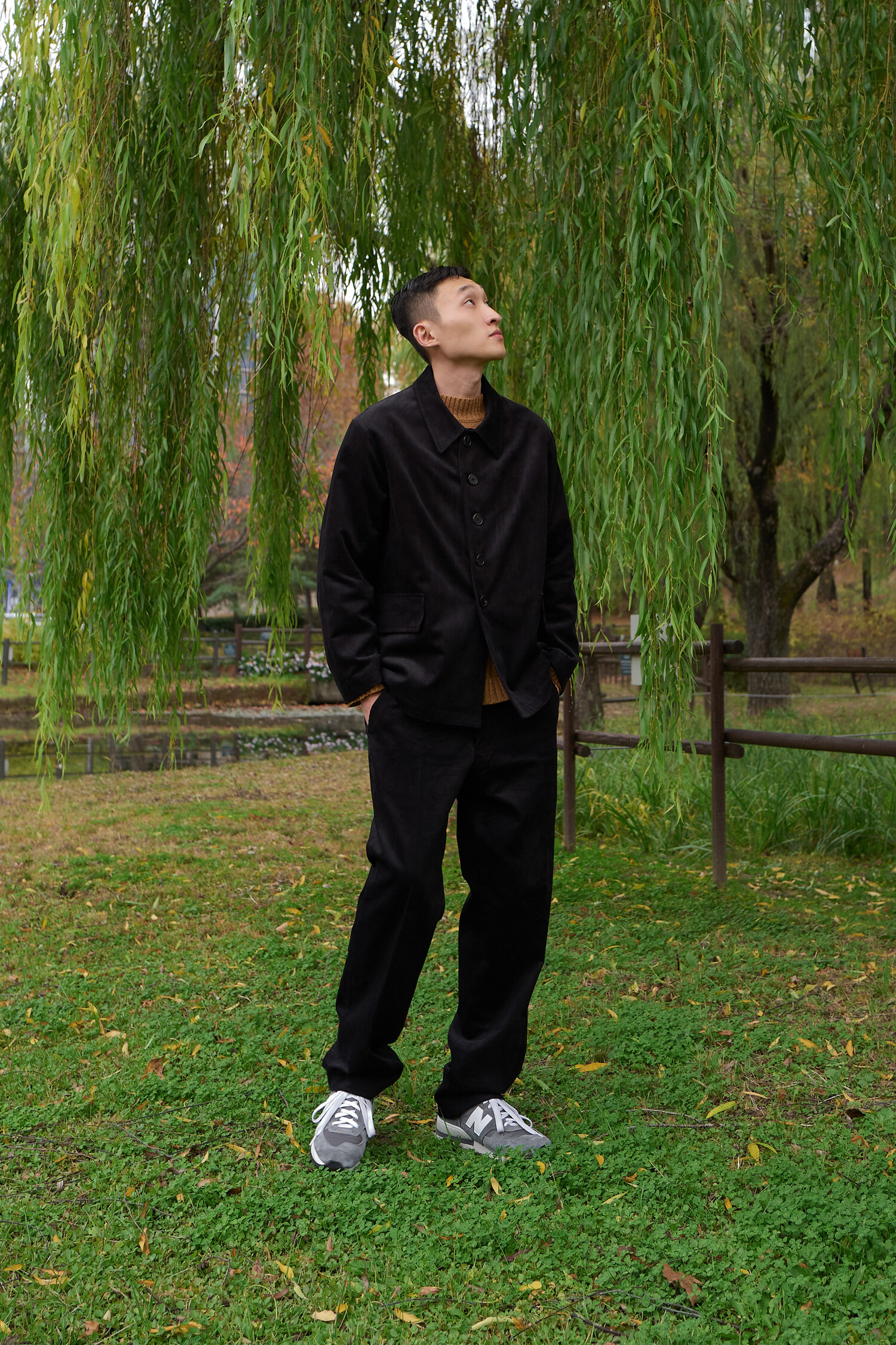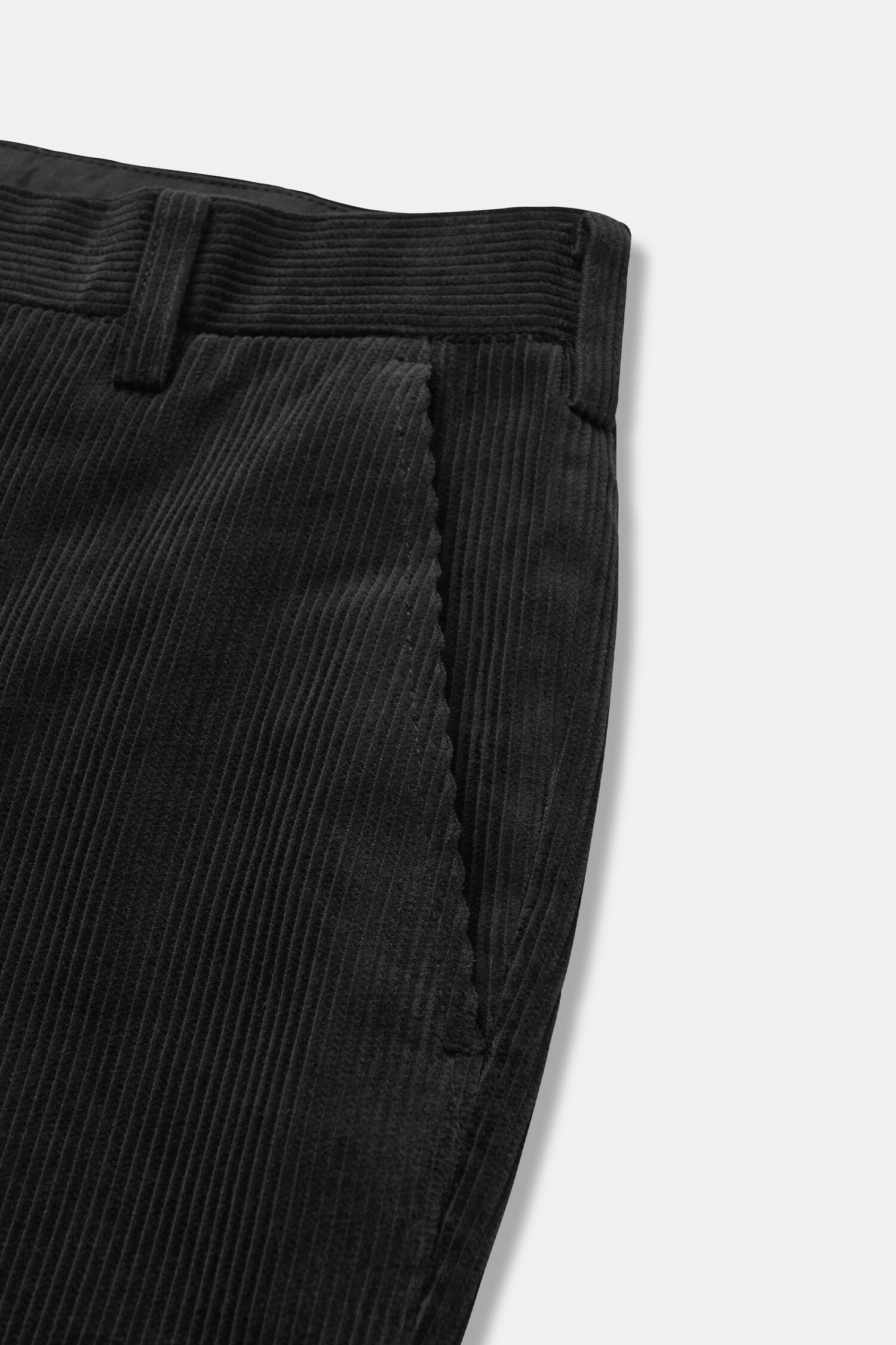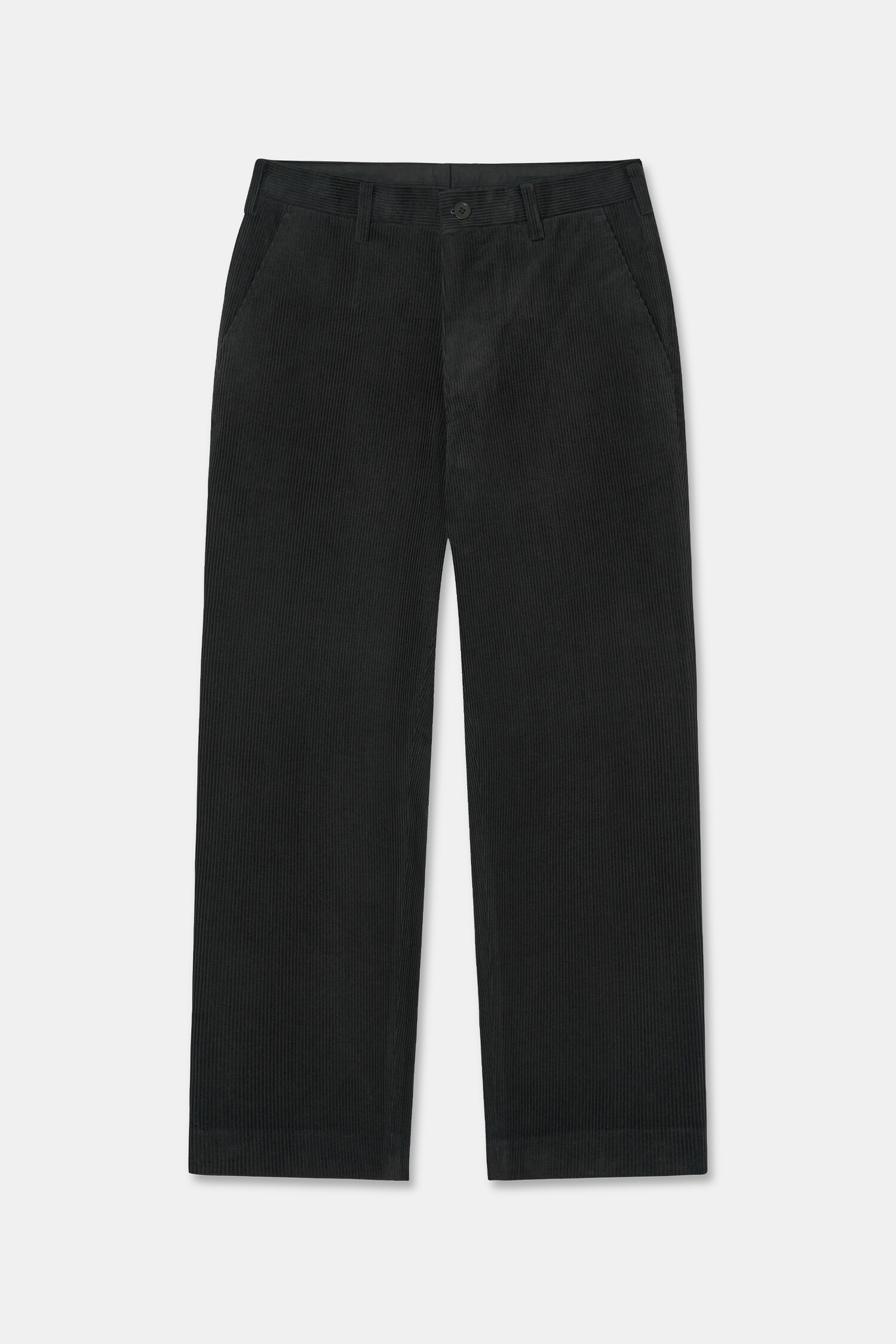 8WALE TRICOT CORD WIDE TAPERED PANTS BLACK