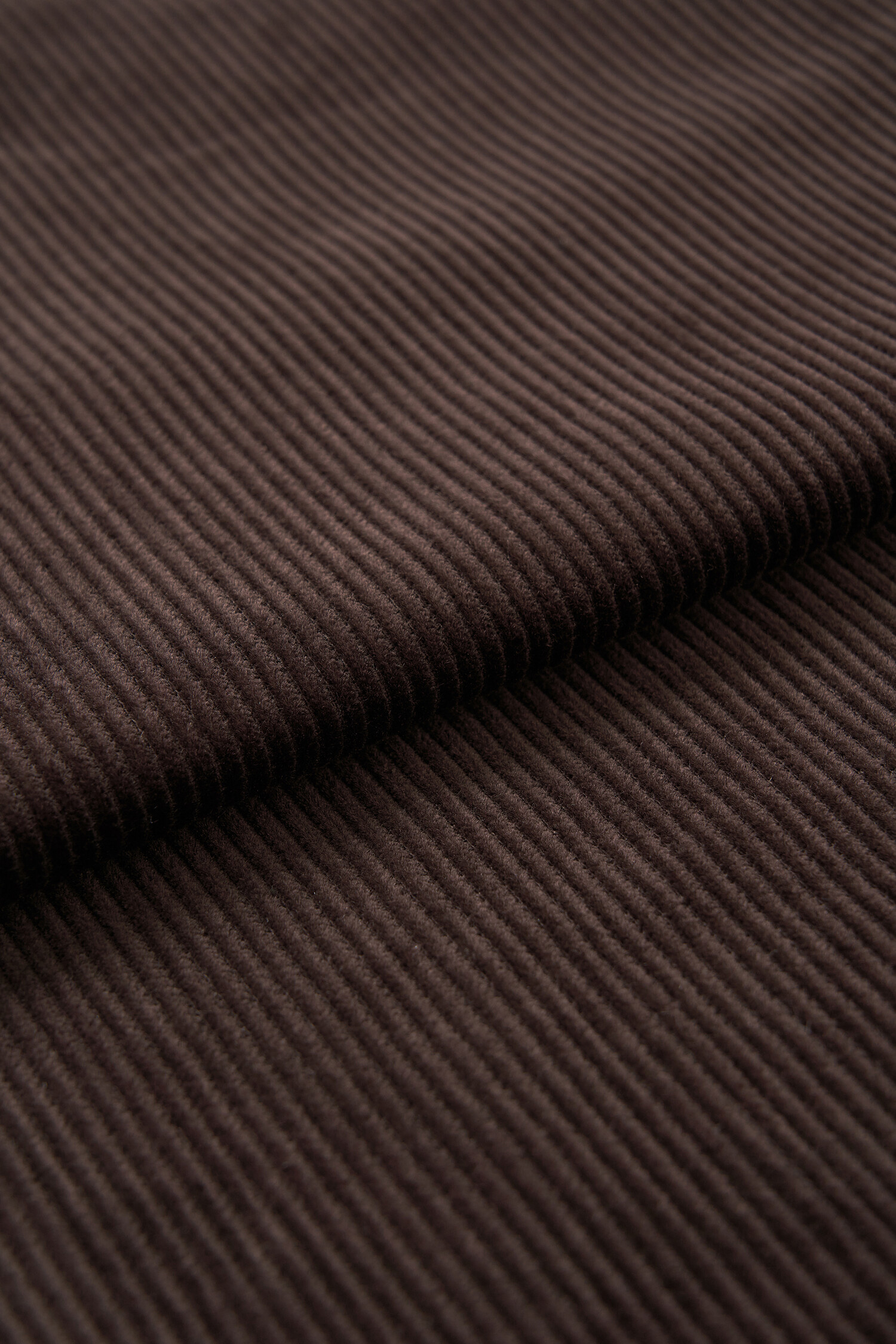 두꺼운 능선이 있는 일본산 8웨일 코듀로이소재입니다. 코듀로이 소재의 부드러운 감촉과 적당한 퍼지 질감이 특징이며 굵게 반복되는 골이 따뜻한 느낌을 더합니다. 두껍고 푹신한 질감으로 캐주얼한 매력이 있습니다.