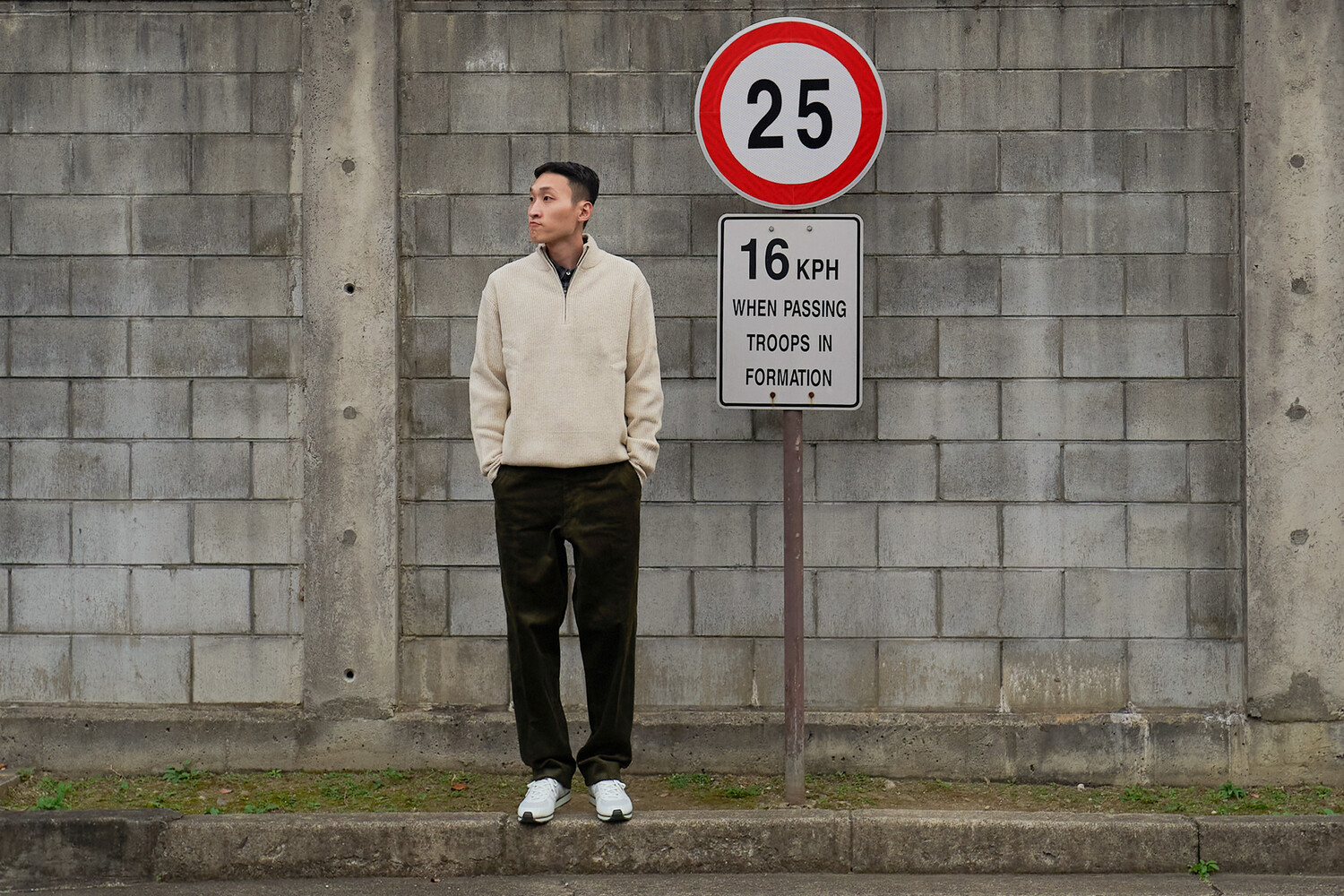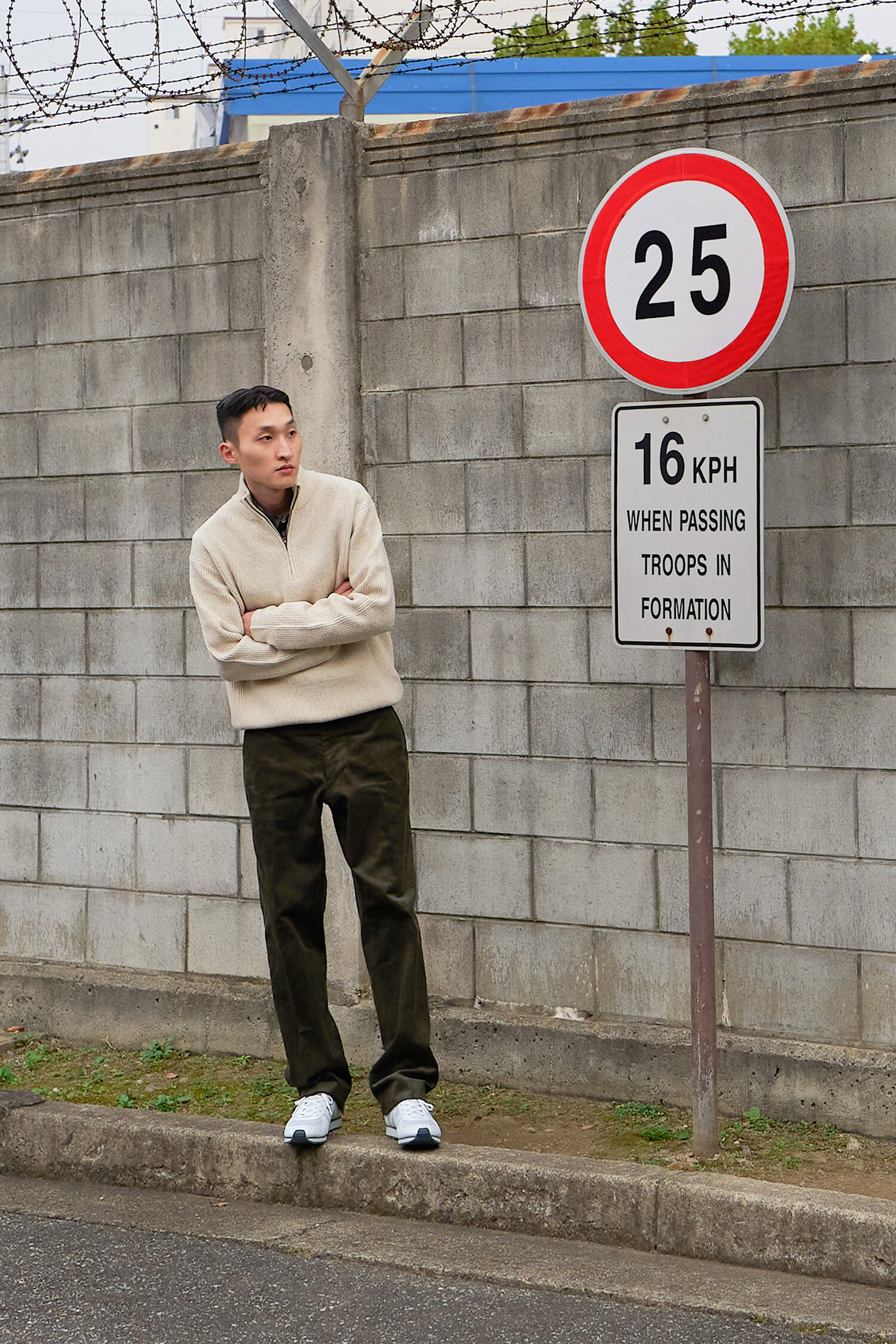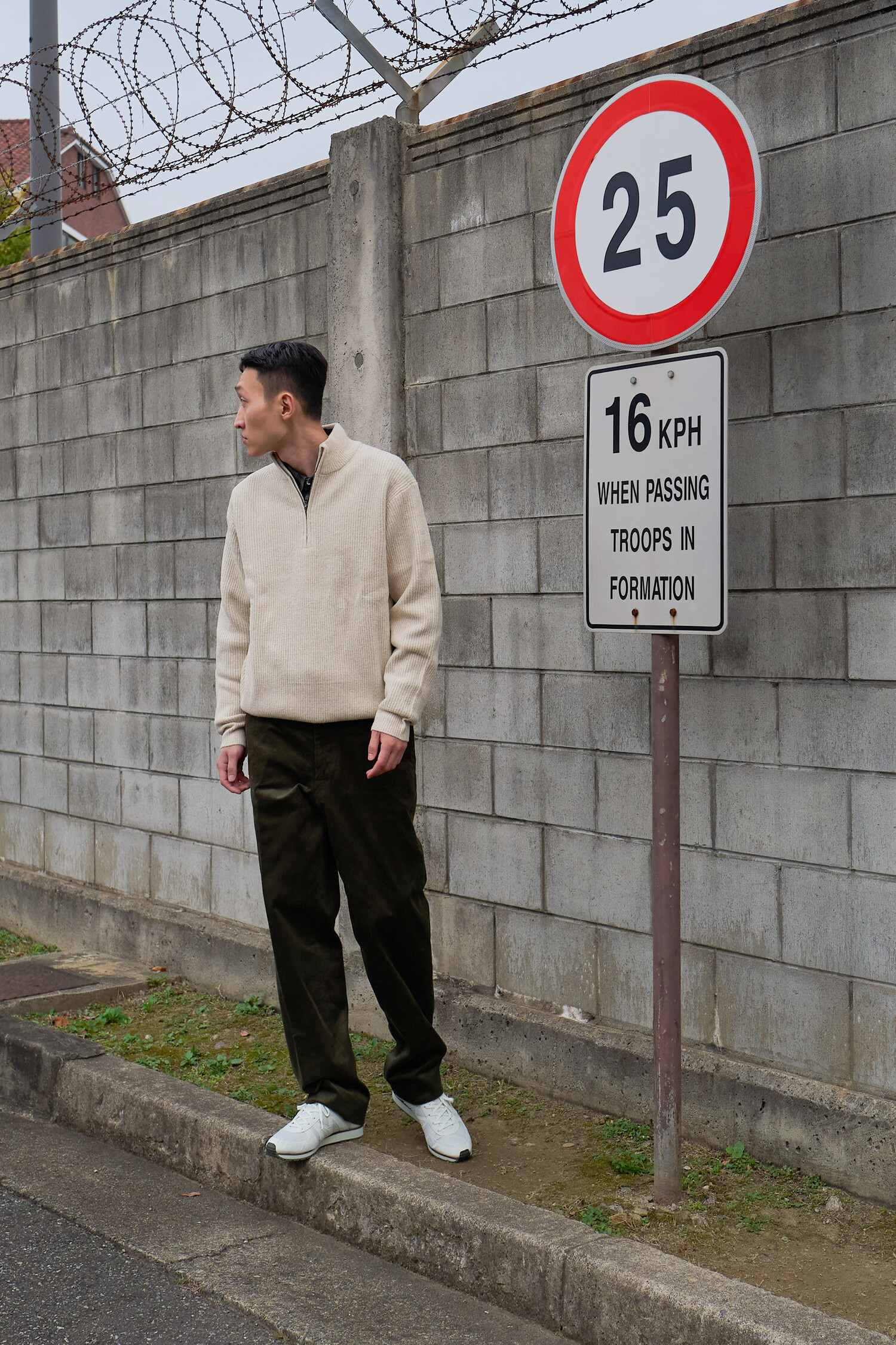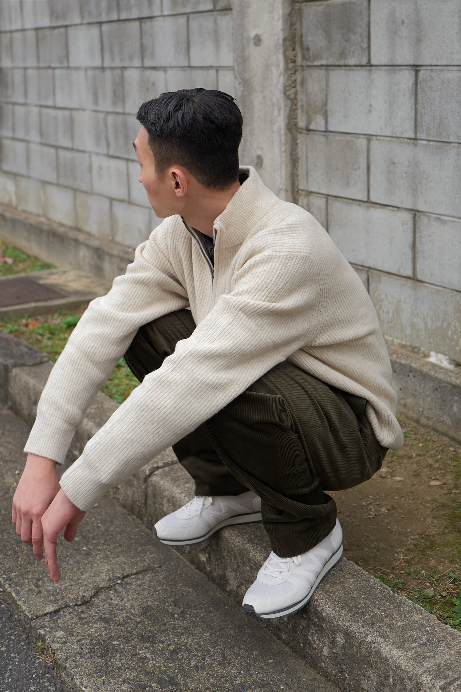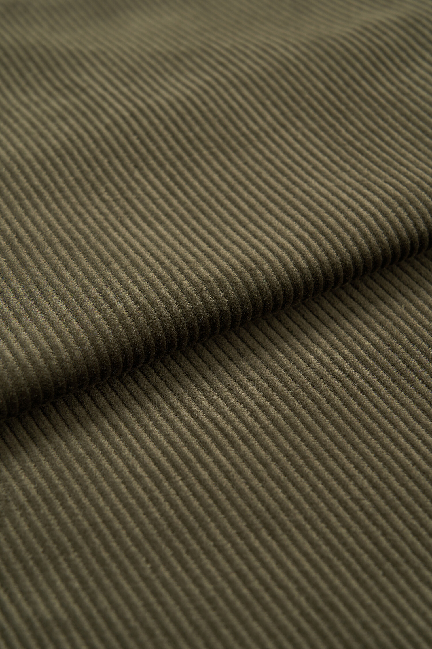 두꺼운 능선이 있는 일본산 8웨일 코듀로이소재입니다. 코듀로이 소재의 부드러운 감촉과 적당한 퍼지 질감이 특징이며 굵게 반복되는 골이 따뜻한 느낌을 더합니다. 두껍고 푹신한 질감으로 캐주얼한 매력이 있습니다.