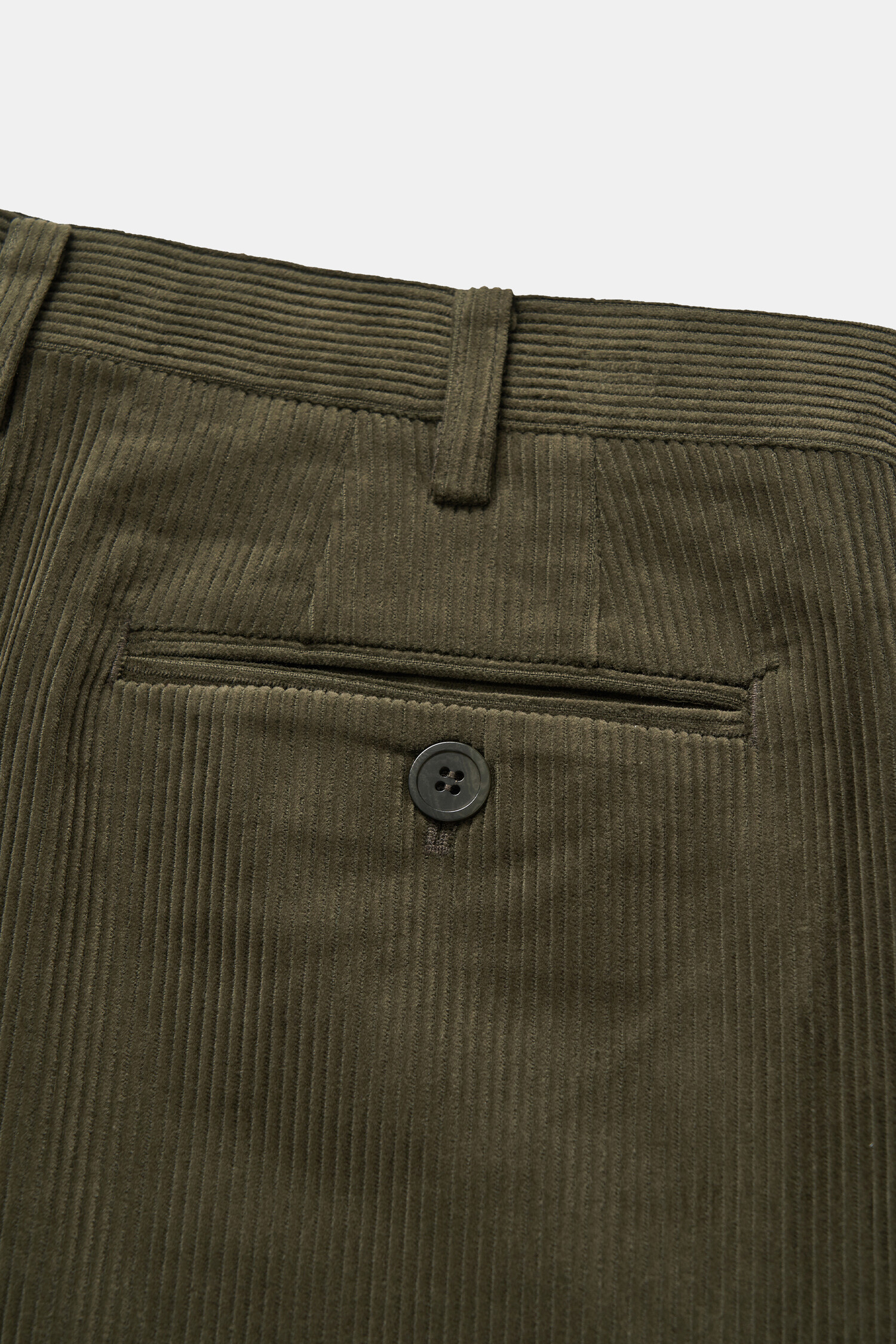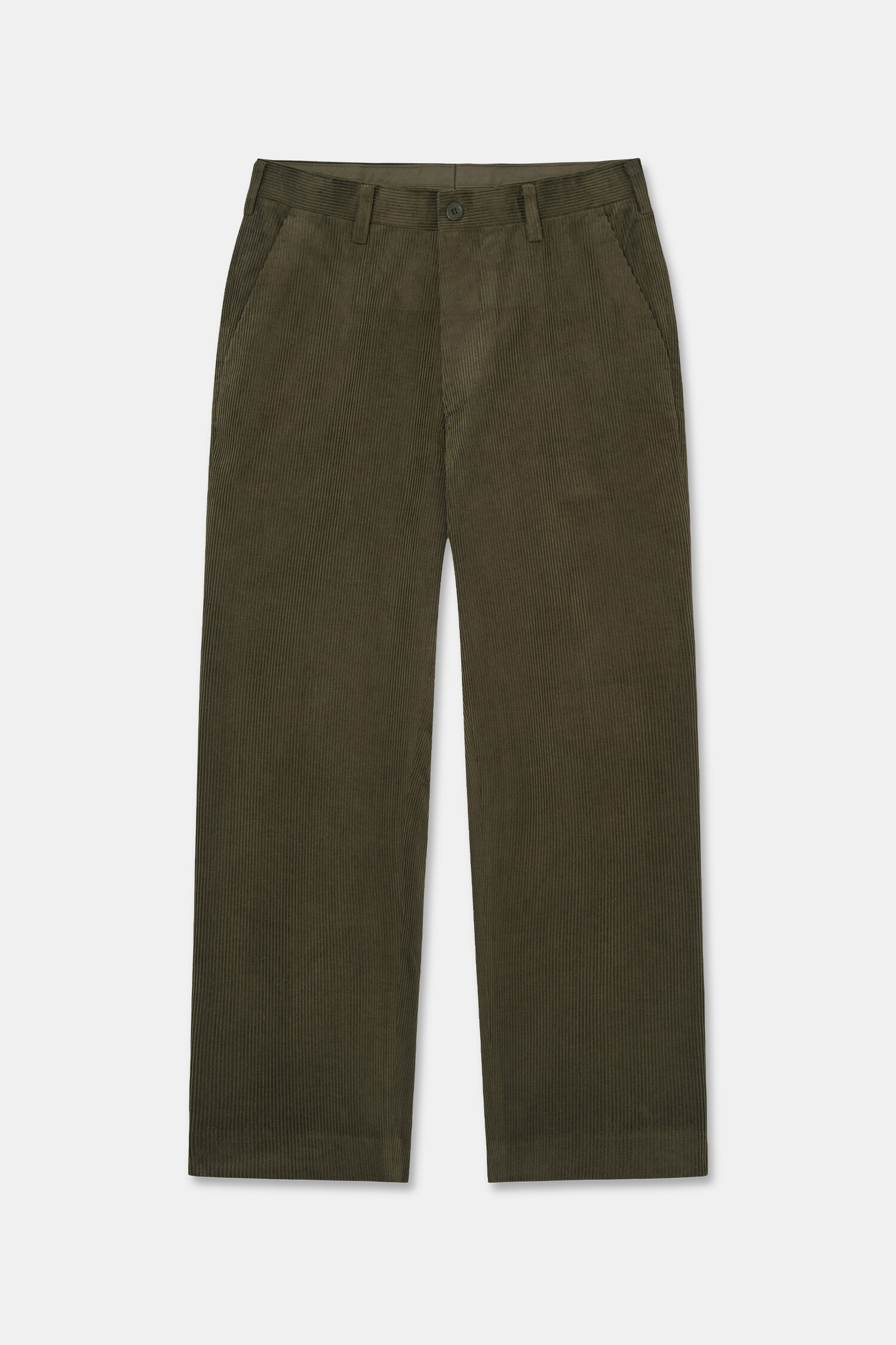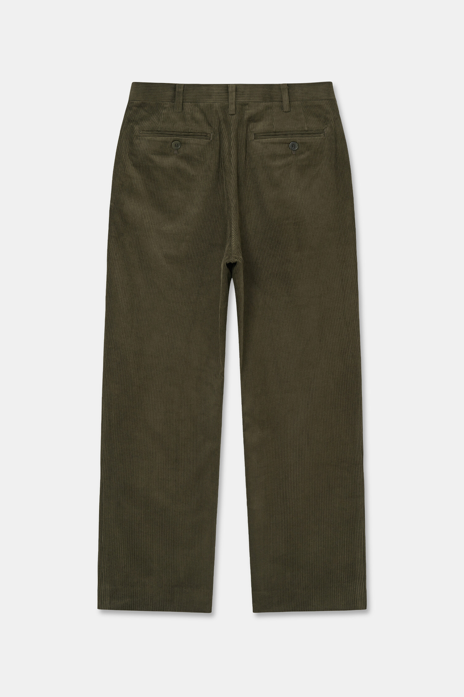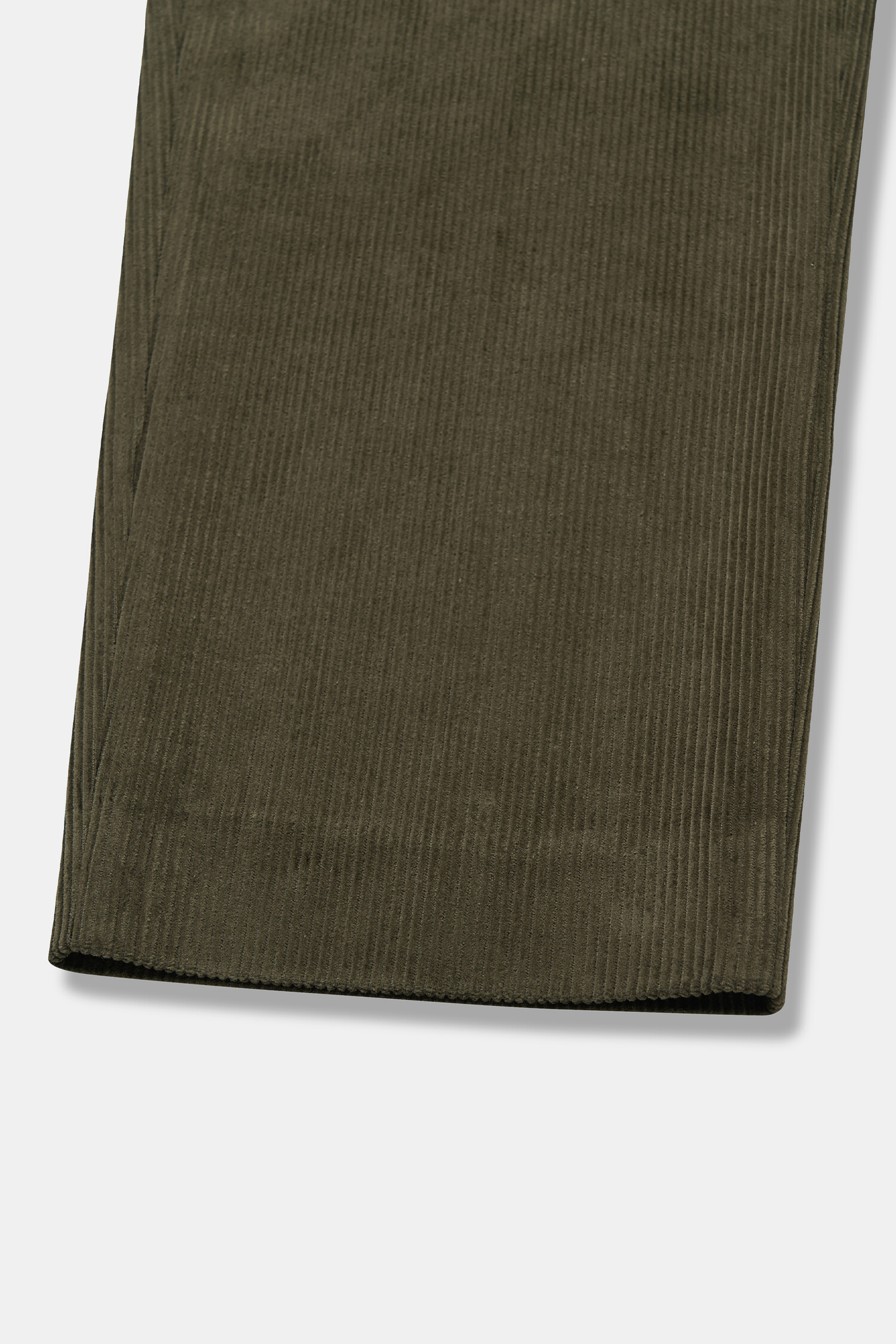 8WALE TRICOT CORD WIDE TAPERED PANTS OLIVE GREEN