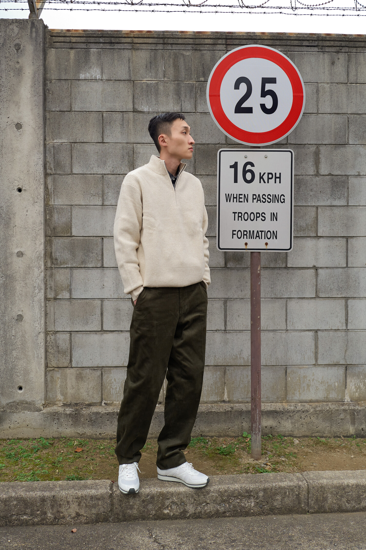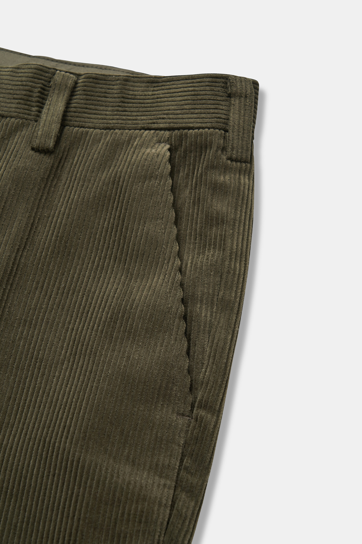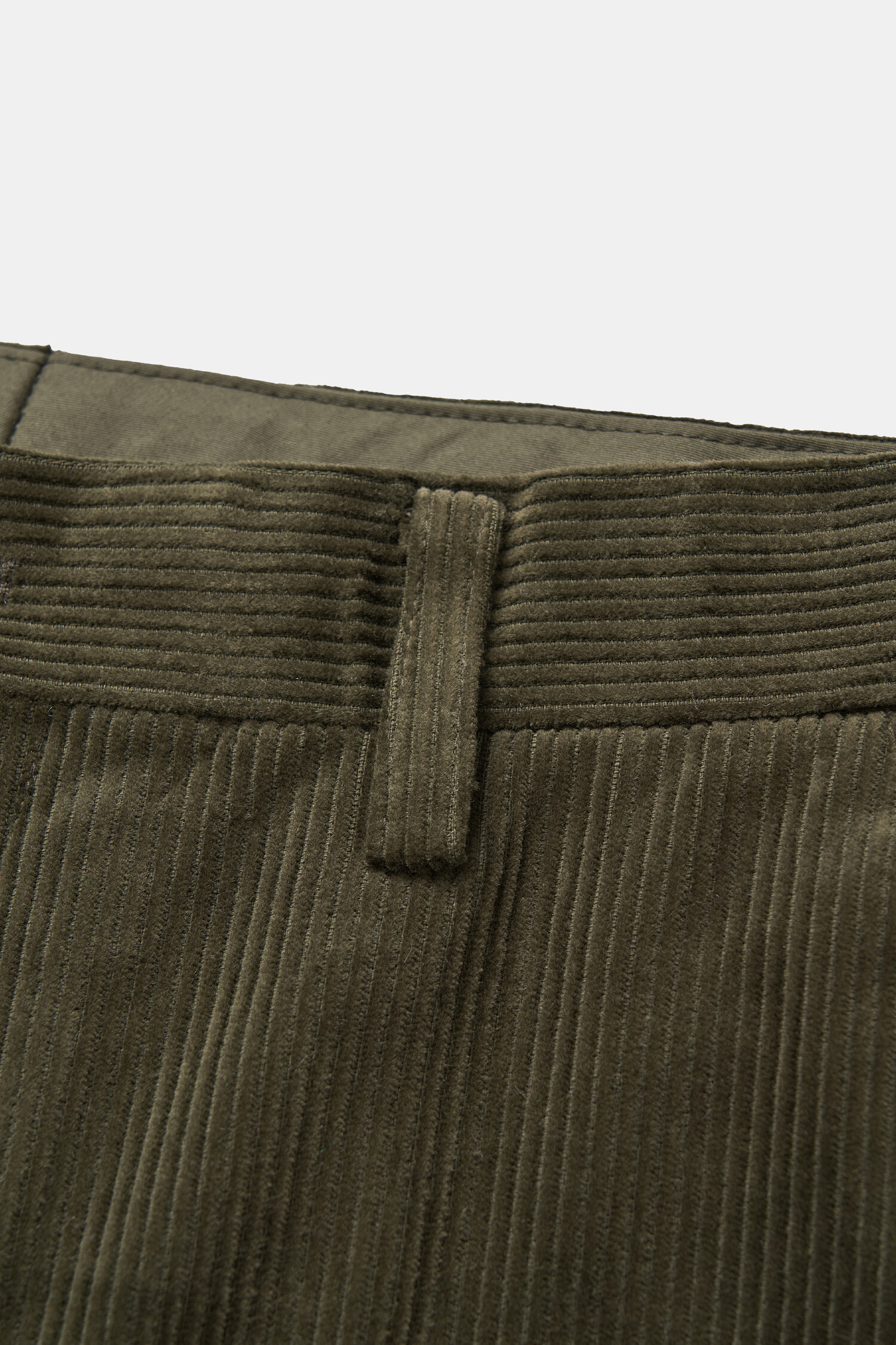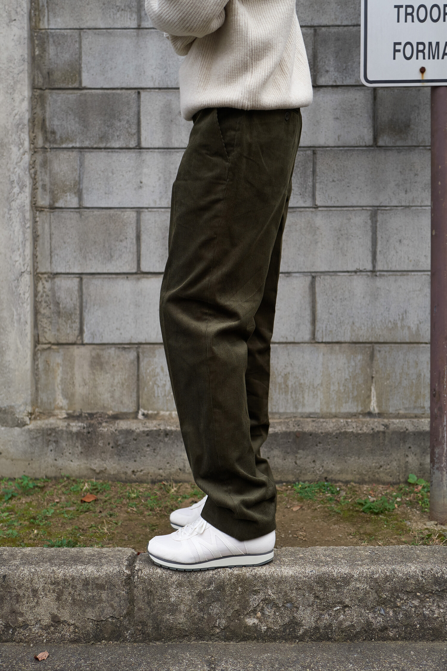 8WALE TRICOT CORD WIDE TAPERED PANTS OLIVE GREEN
