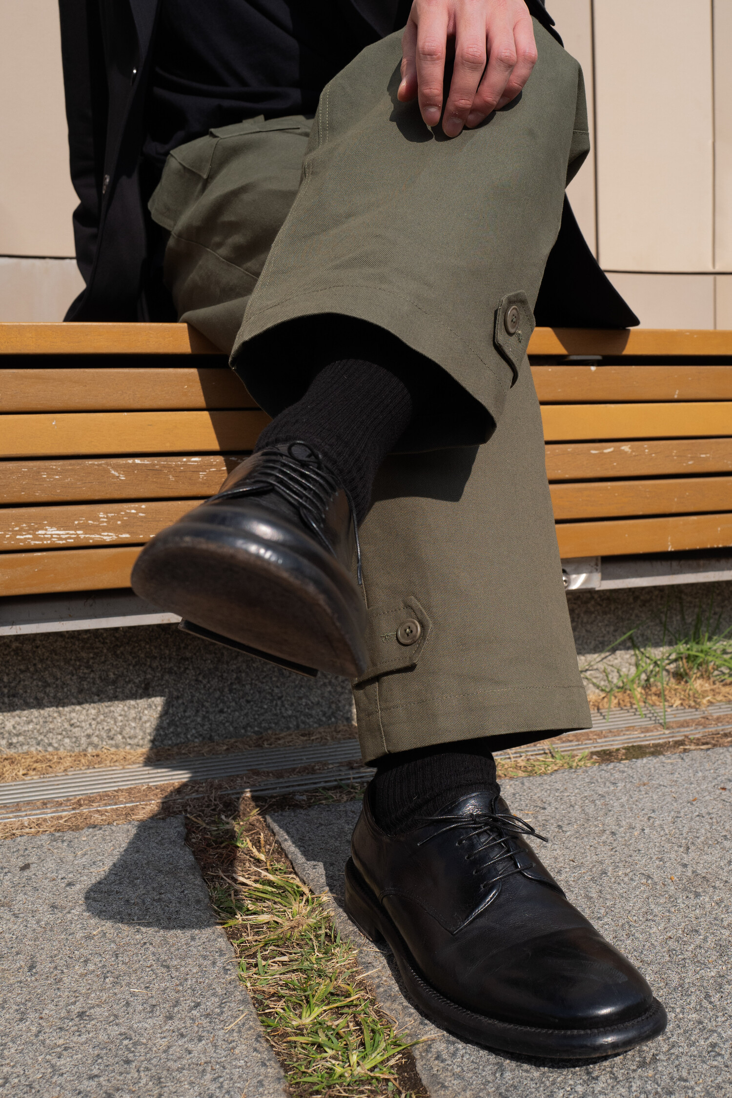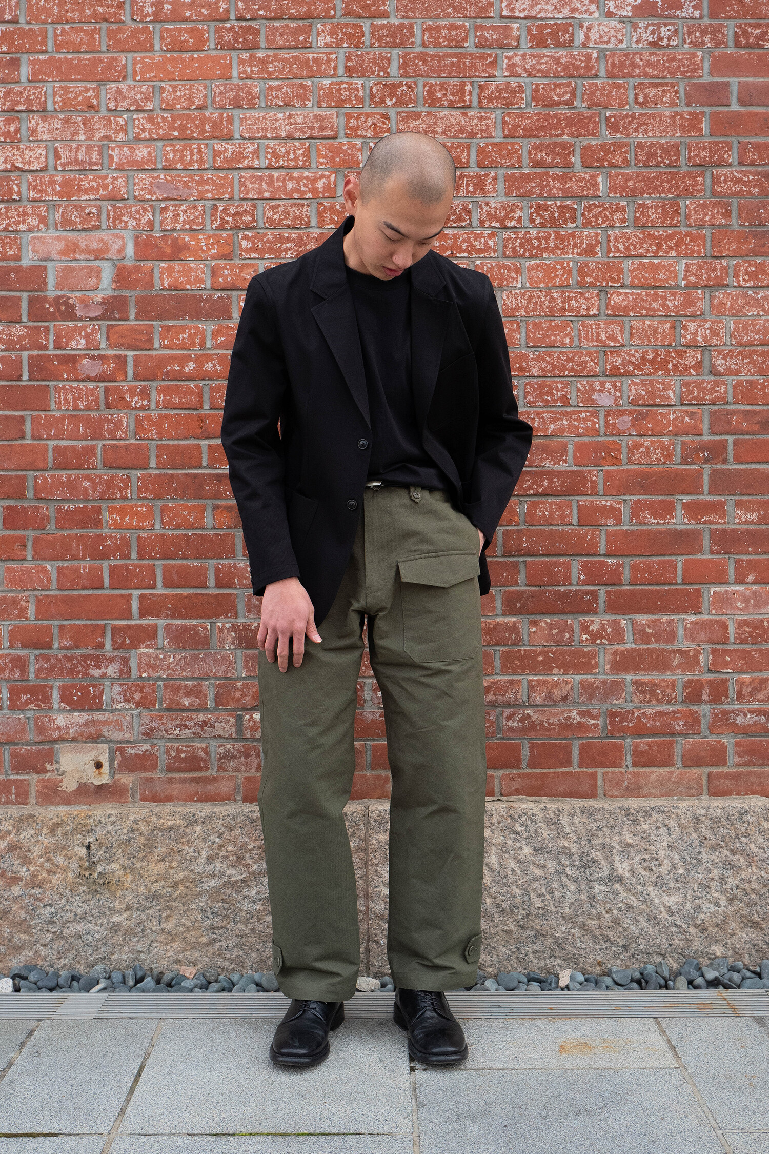 오리지널 밀리터리 제품을 더패브릭의 시선으로 재해석한 제품입니다. M44 팬츠는 밀리터리 중에서도 캐릭터가 강한 편이라 아직까지 널리 알려진 디자인은 아닙니다. 제품의 아이덴티티와도 같은 주머니 개성들은 살리고 과한 부분은 덜어내 보통 사람들의, 보통의 일상에 녹아들어갈 수 있도록 디테일들을 고안한 제품입니다. 숏한 기장감의 자켓이나 코트와 호흡이 좋으니 많이 즐겨주셨으면 좋겠습니다.