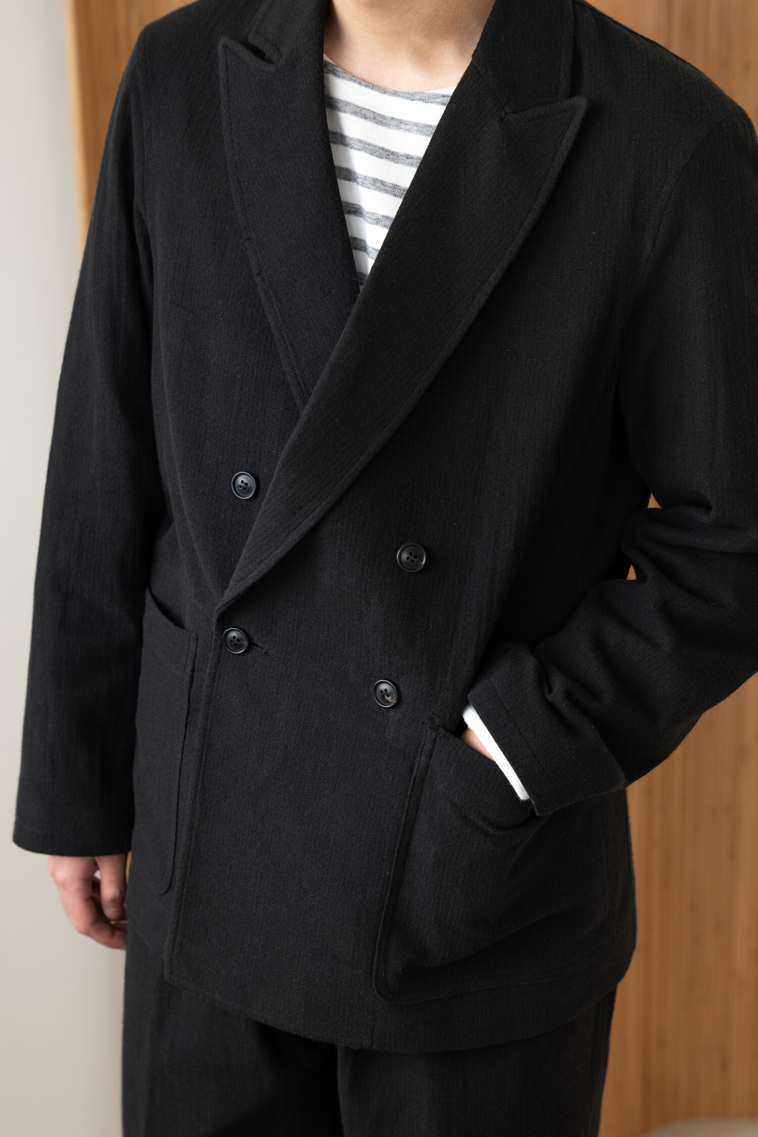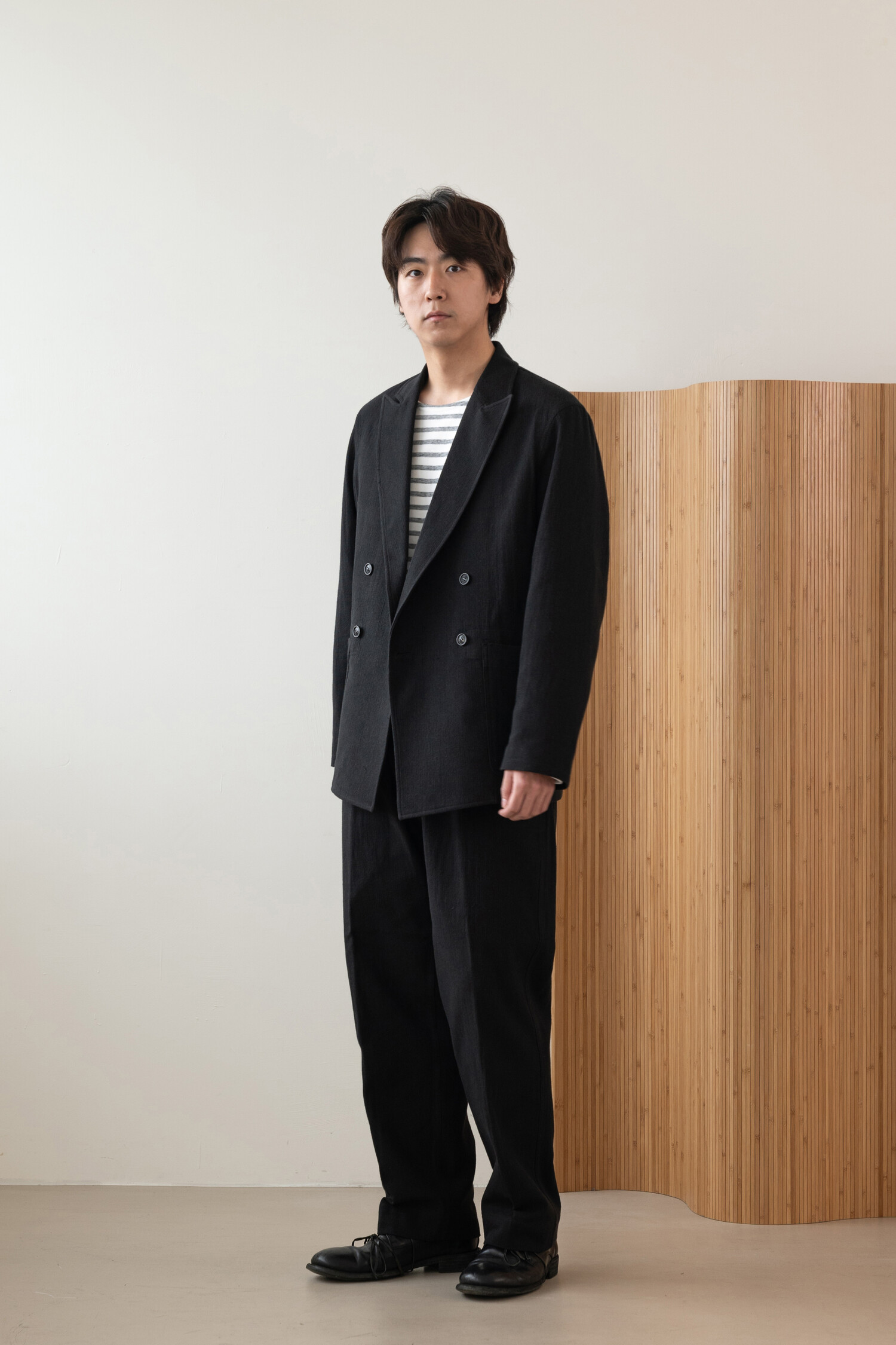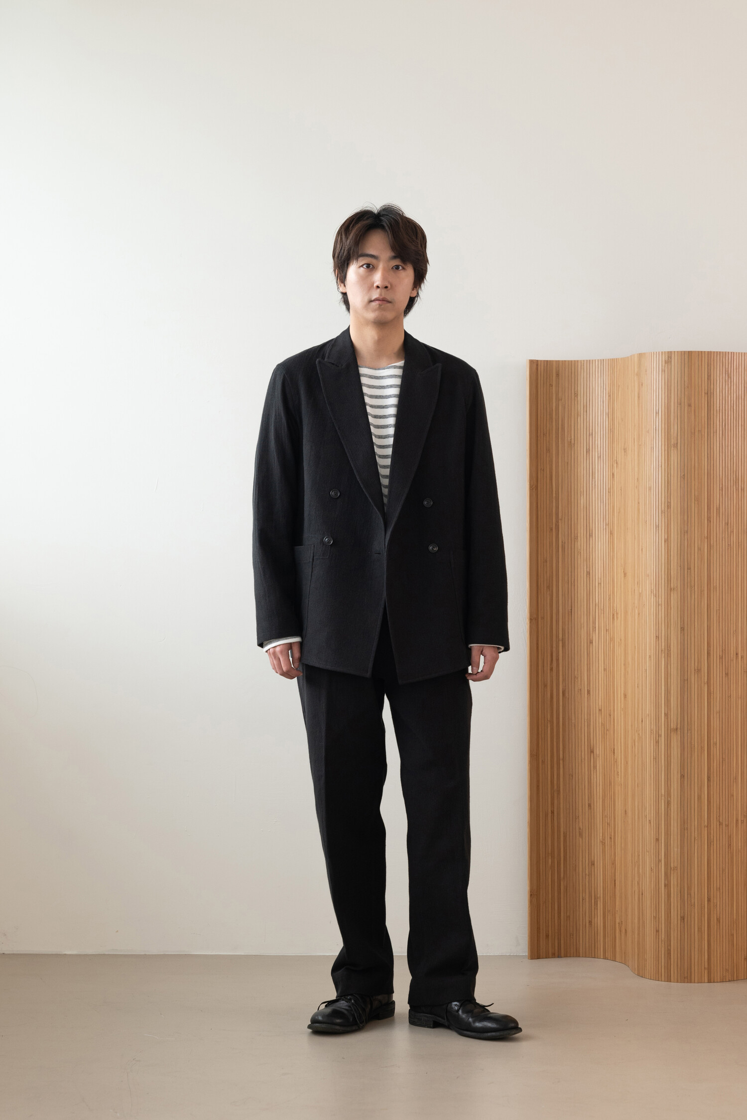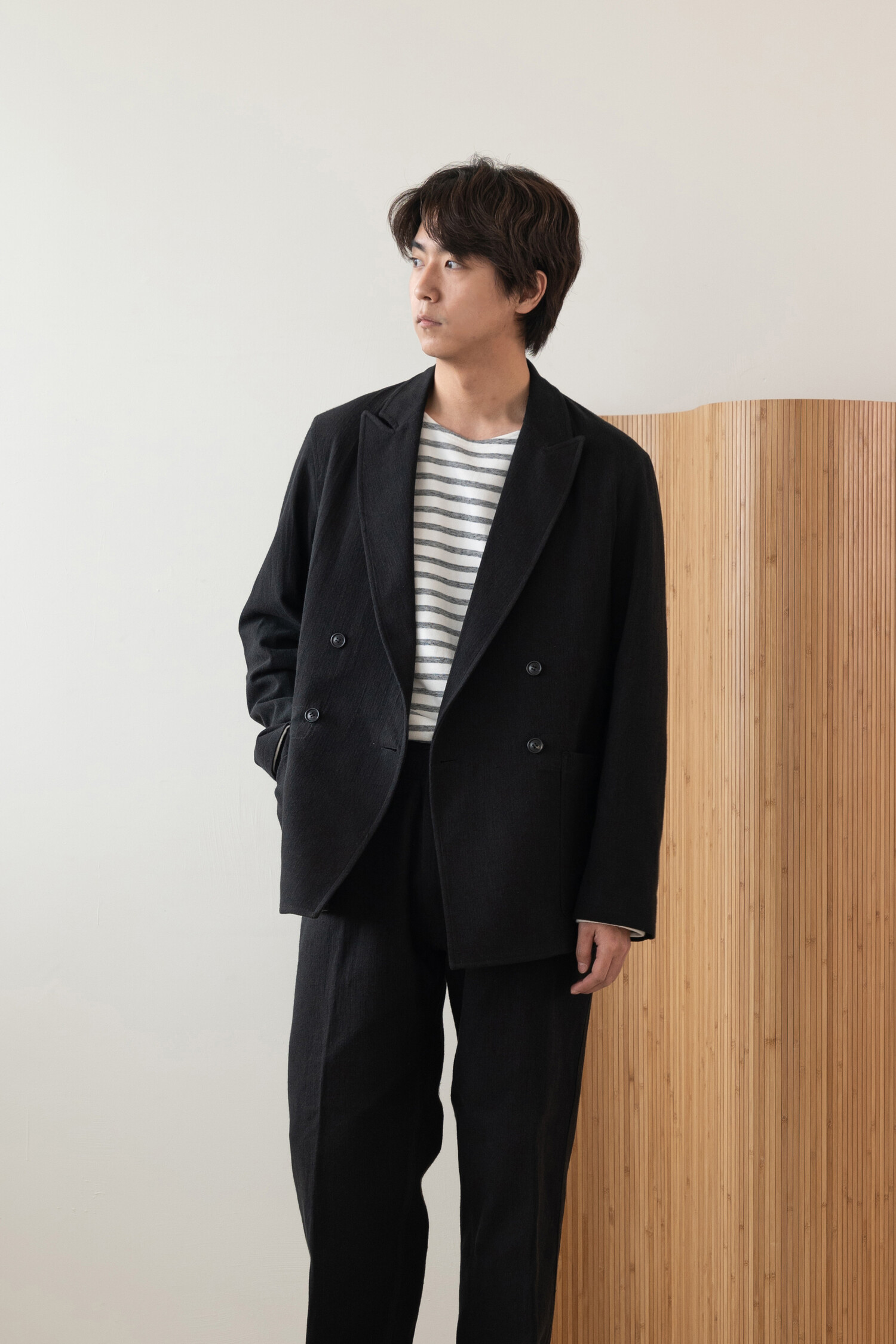 이지팬츠에서 출발한 철학을 이어, 자켓과 트라우저를 같은 원단으로 만들었습니다. 형태는 갖췄지만 입었을 때는 편안해야 한다는 생각으로 비율과 구조를 다듬었습니다. 몸을 살며시 감싸는 듯한 실루엣은 자연스럽게 흐르며, 헤어리한 더블 페이스 원단의 질감이 두 옷을 하나로 이어줍니다. 결국 자주 손이 갈 수밖에 없는 셋업입니다.