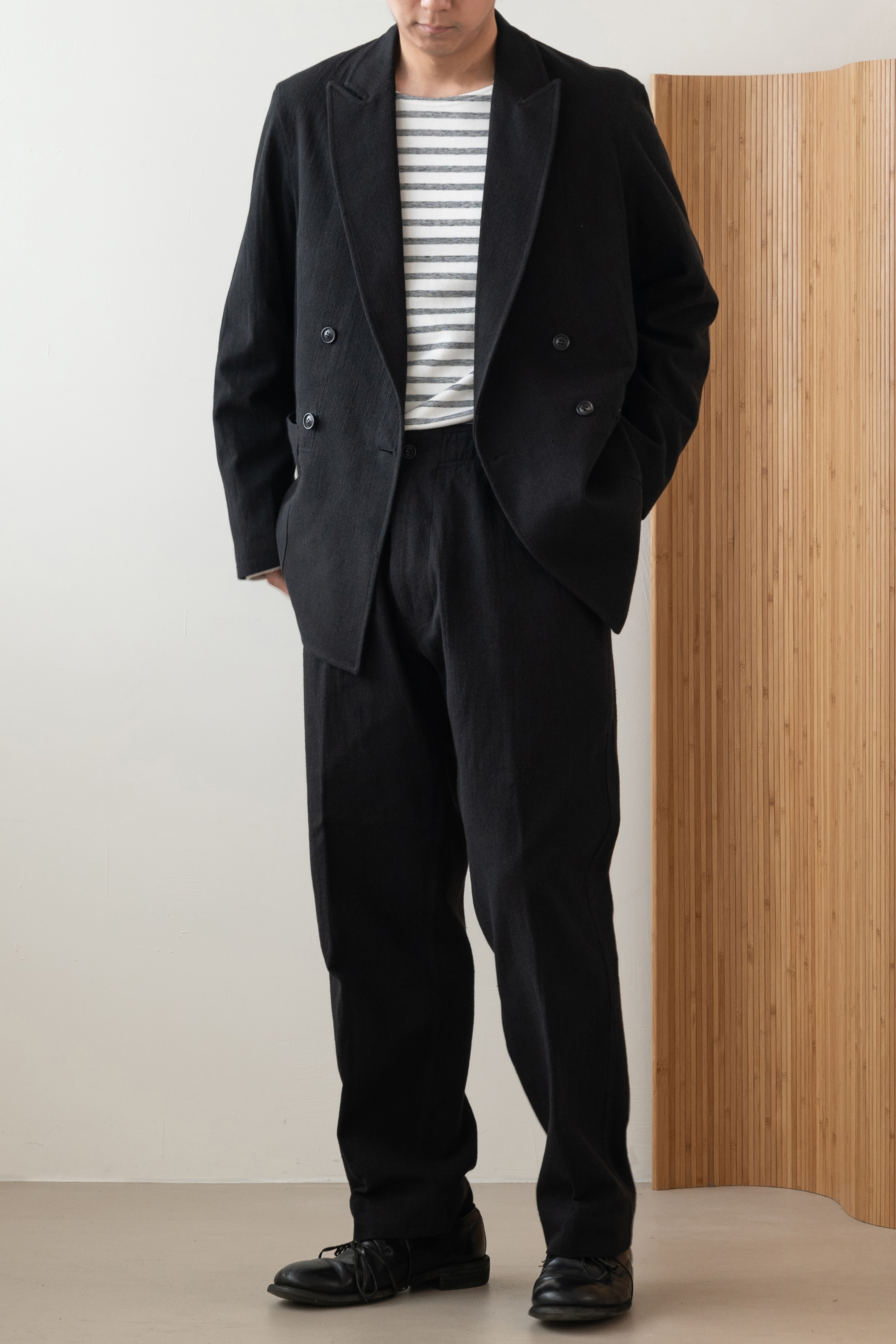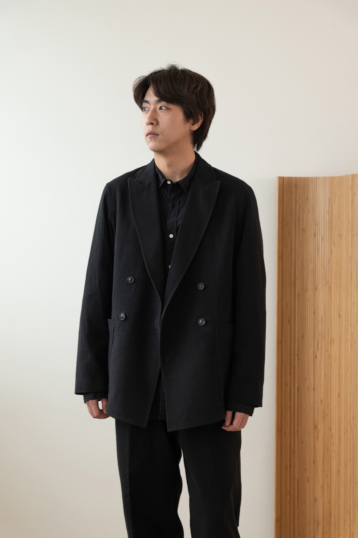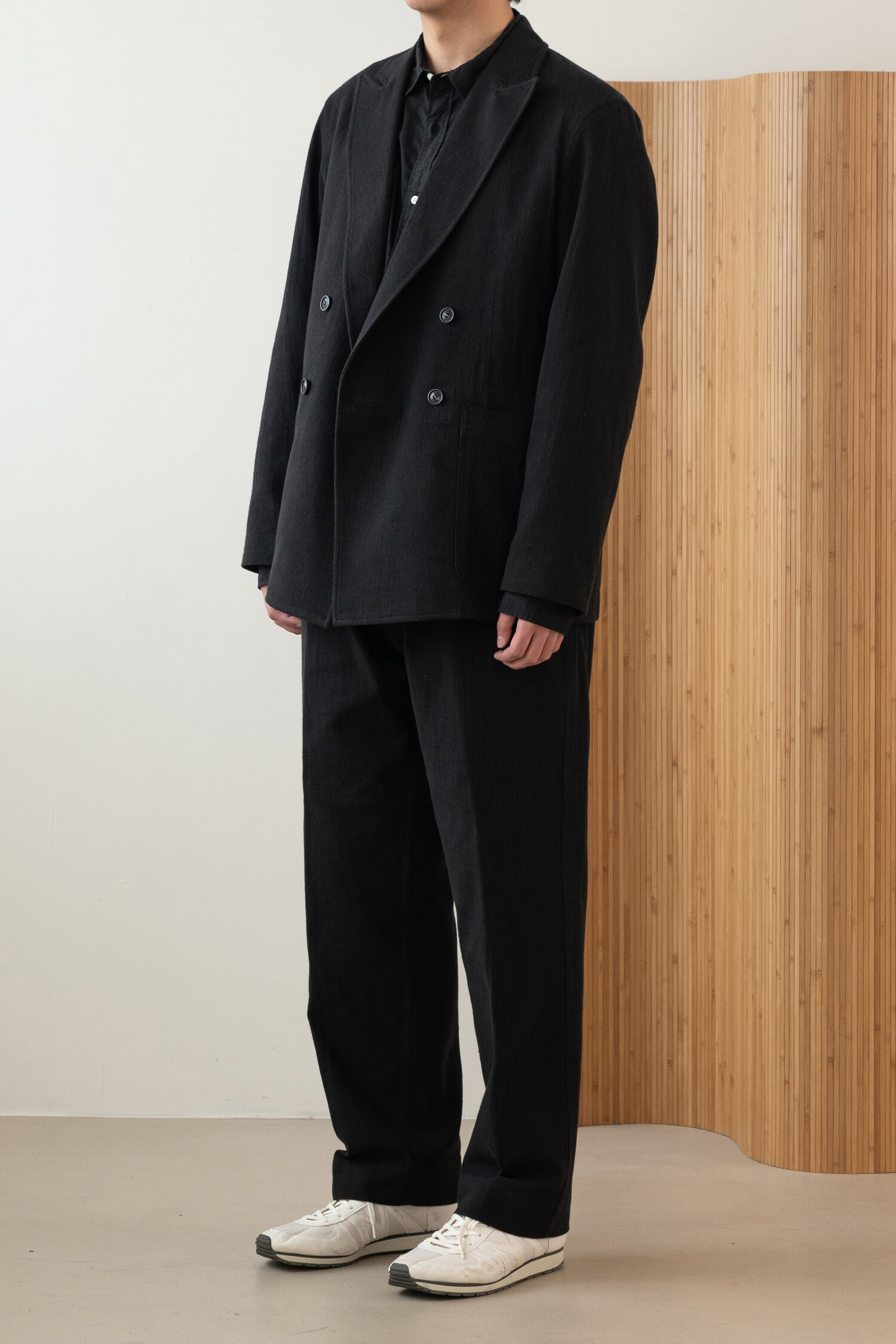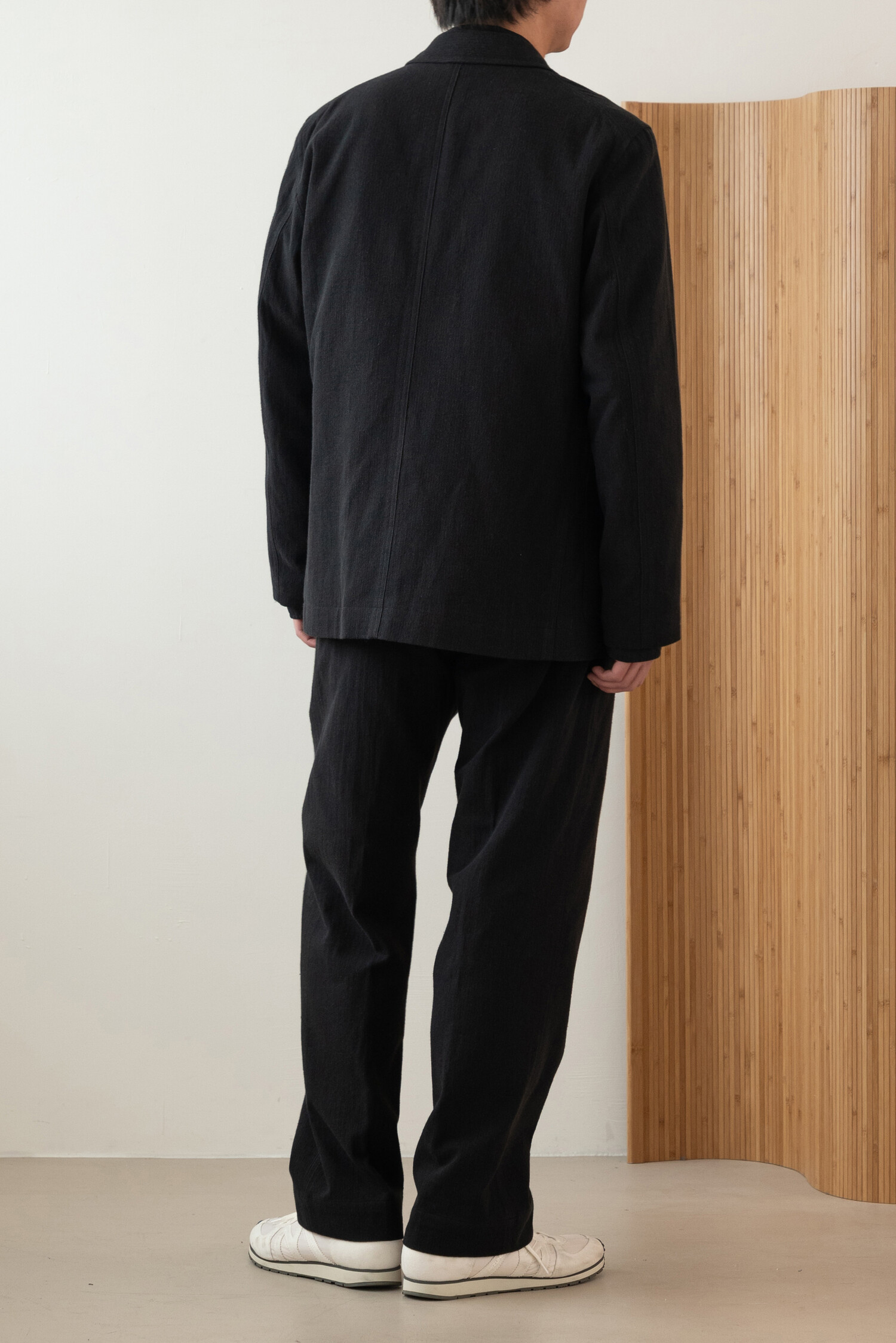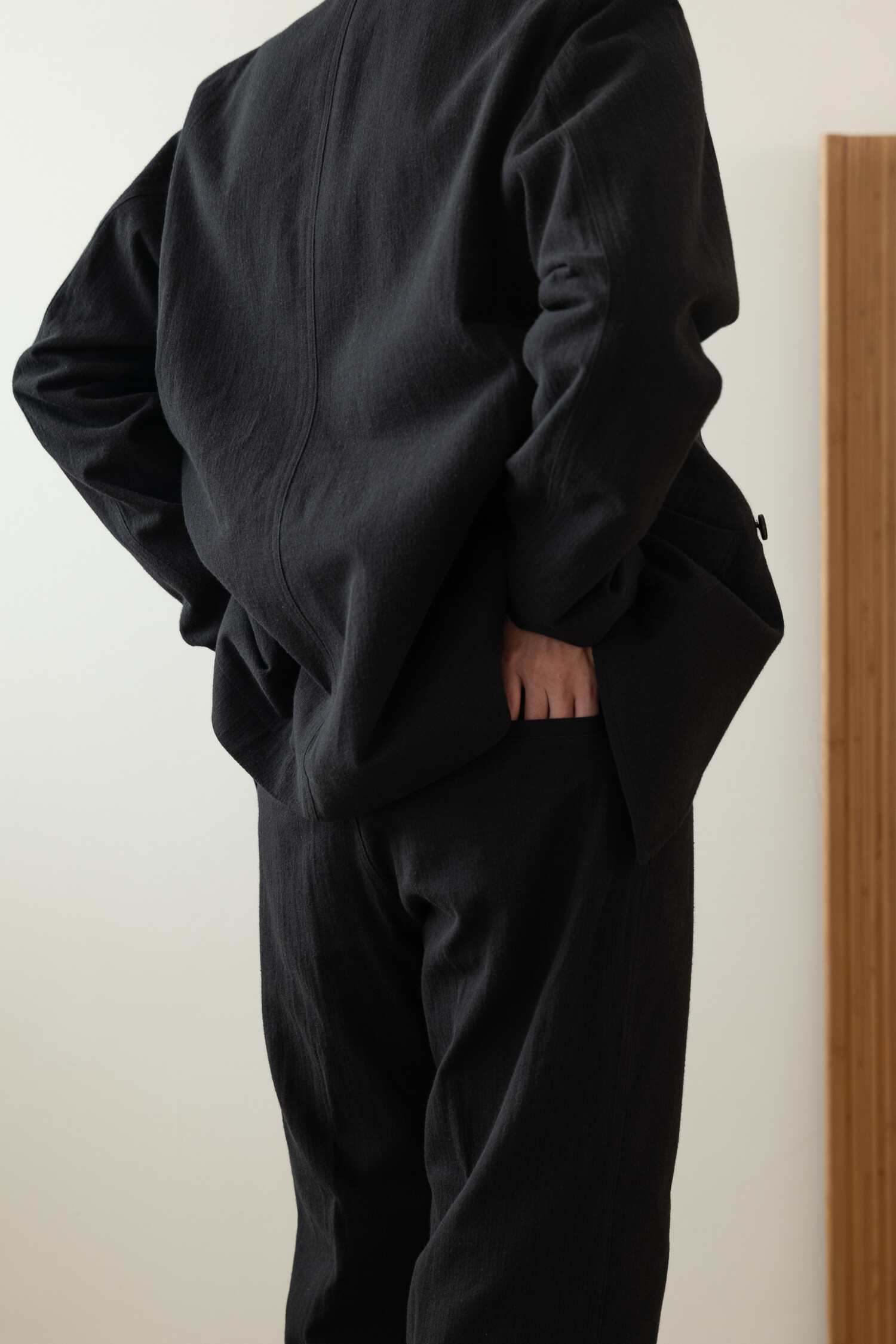 이지팬츠에서 출발한 철학을 이어, 자켓과 트라우저를 같은 원단으로 만들었습니다. 형태는 갖췄지만 입었을 때는 편안해야 한다는 생각으로 비율과 구조를 다듬었습니다. 몸을 살며시 감싸는 듯한 실루엣은 자연스럽게 흐르며, 헤어리한 더블 페이스 원단의 질감이 두 옷을 하나로 이어줍니다. 결국 자주 손이 갈 수밖에 없는 셋업입니다.