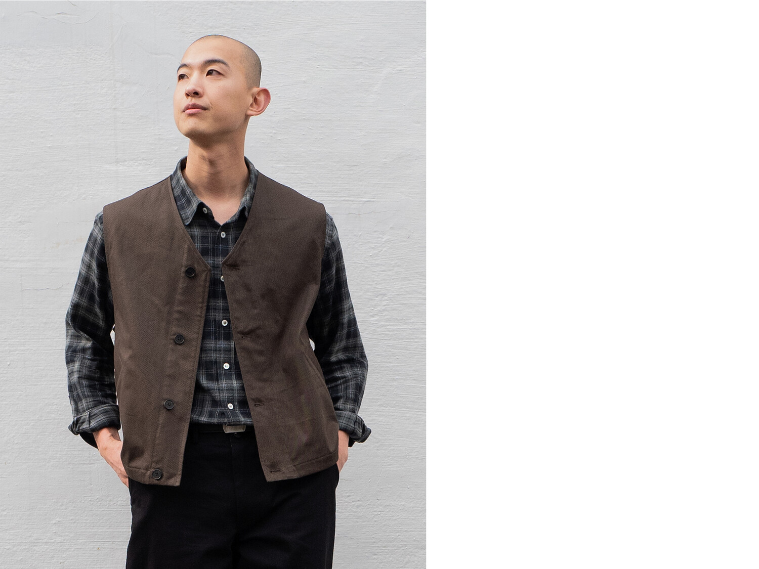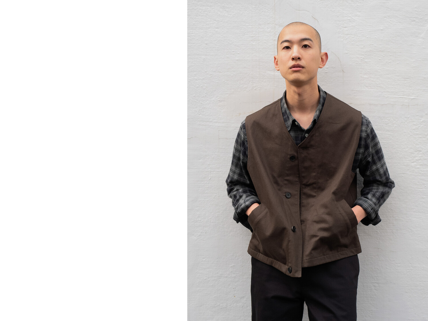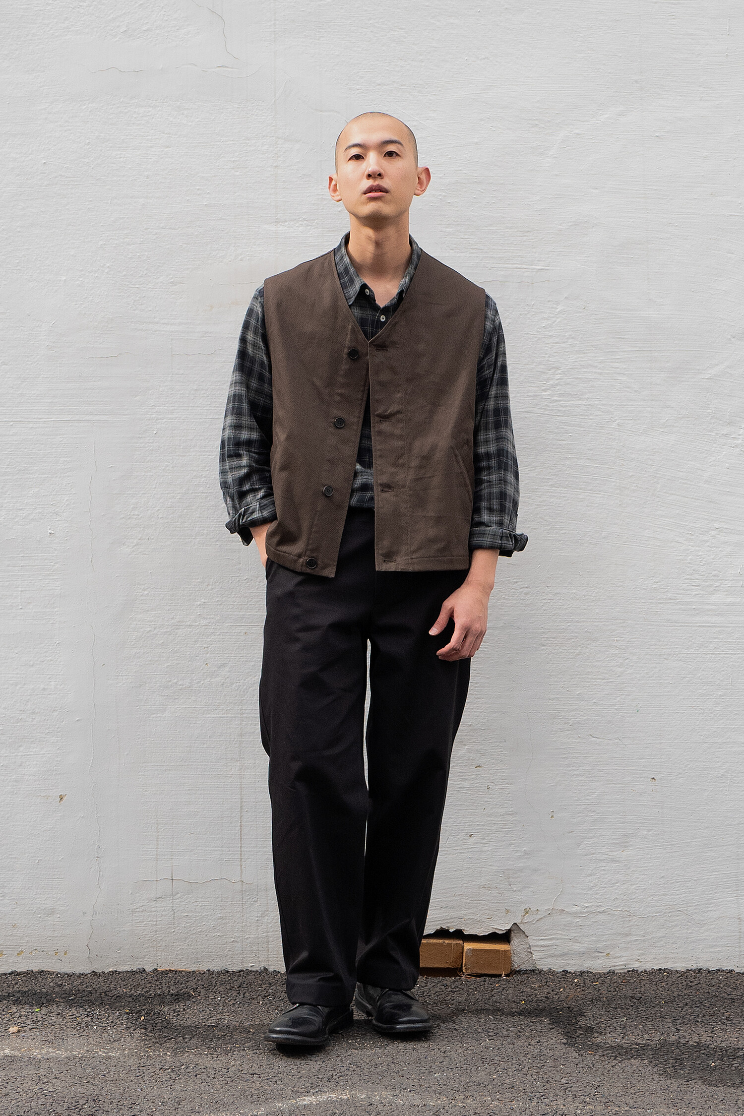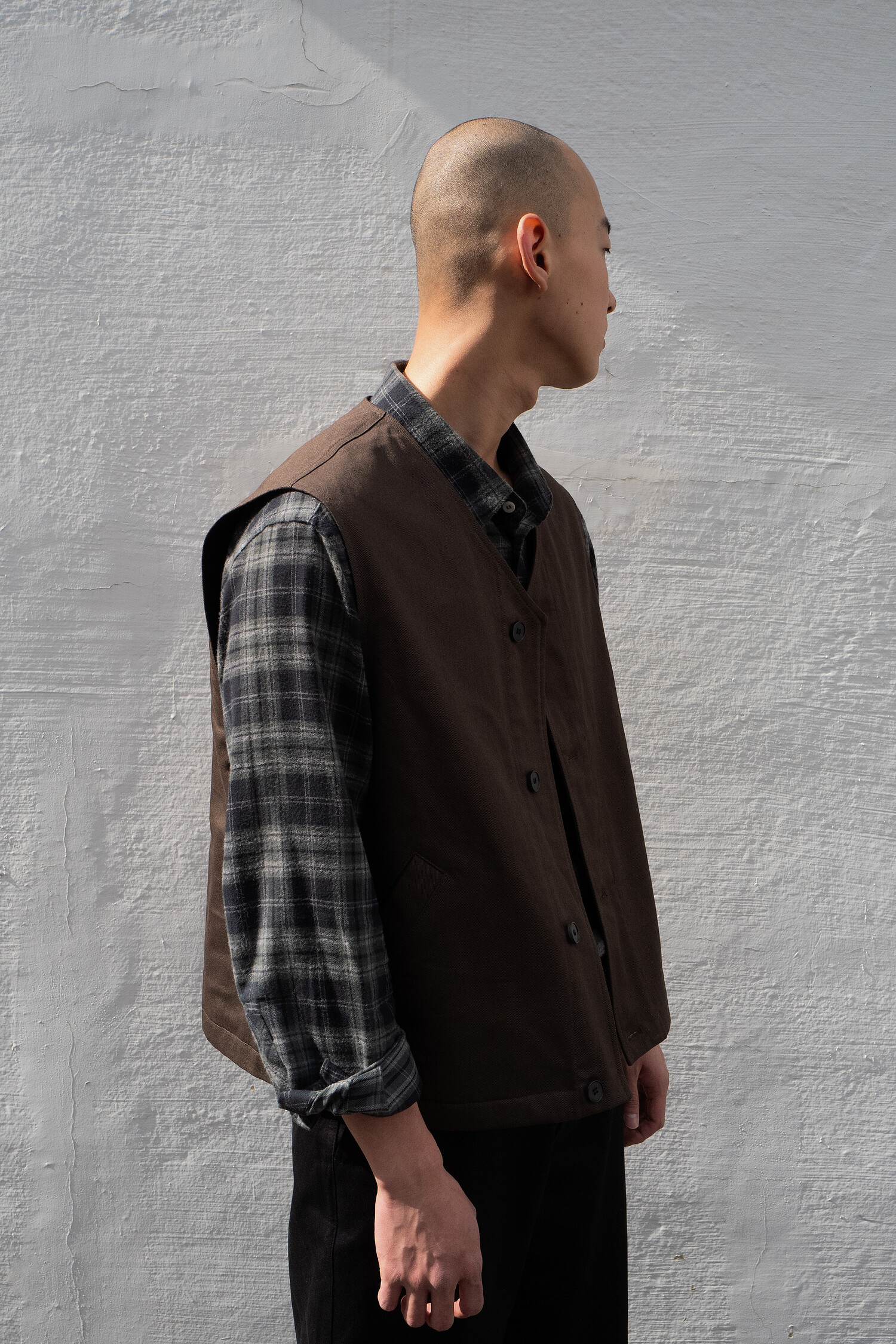 JAPANESE COTTON DRILL COTTON VEST CHOCOLATE