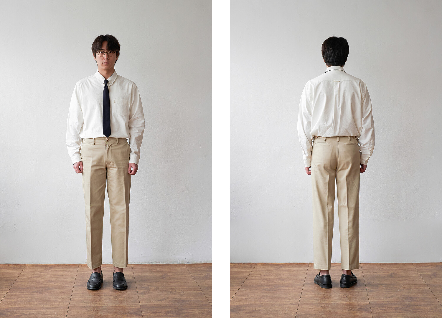 옷의 기본에 소재로 가치를 더해 가장 보통의 옷을 만들겠다는 더패브릭의 철학을 토대로 제대로된 치노를 만들기 위해 노력한 끝에 탄생한 제품입니다. 겉감, 안감 모두 오직 치노를 위해 개발된 일본산 소재를 사용했으며 작은 부분까지 상질의 부자재를 사용해 타협하지 않고 만들었습니다. 봉제 또한 기존에 활용하지 않던 새로운 기법들을 도입함으로써 제품 자체에 대한 완성도를 높였으며 경년의 변화를 느끼실 수 있도록 인위적인 워싱은 하지 않았습니다.