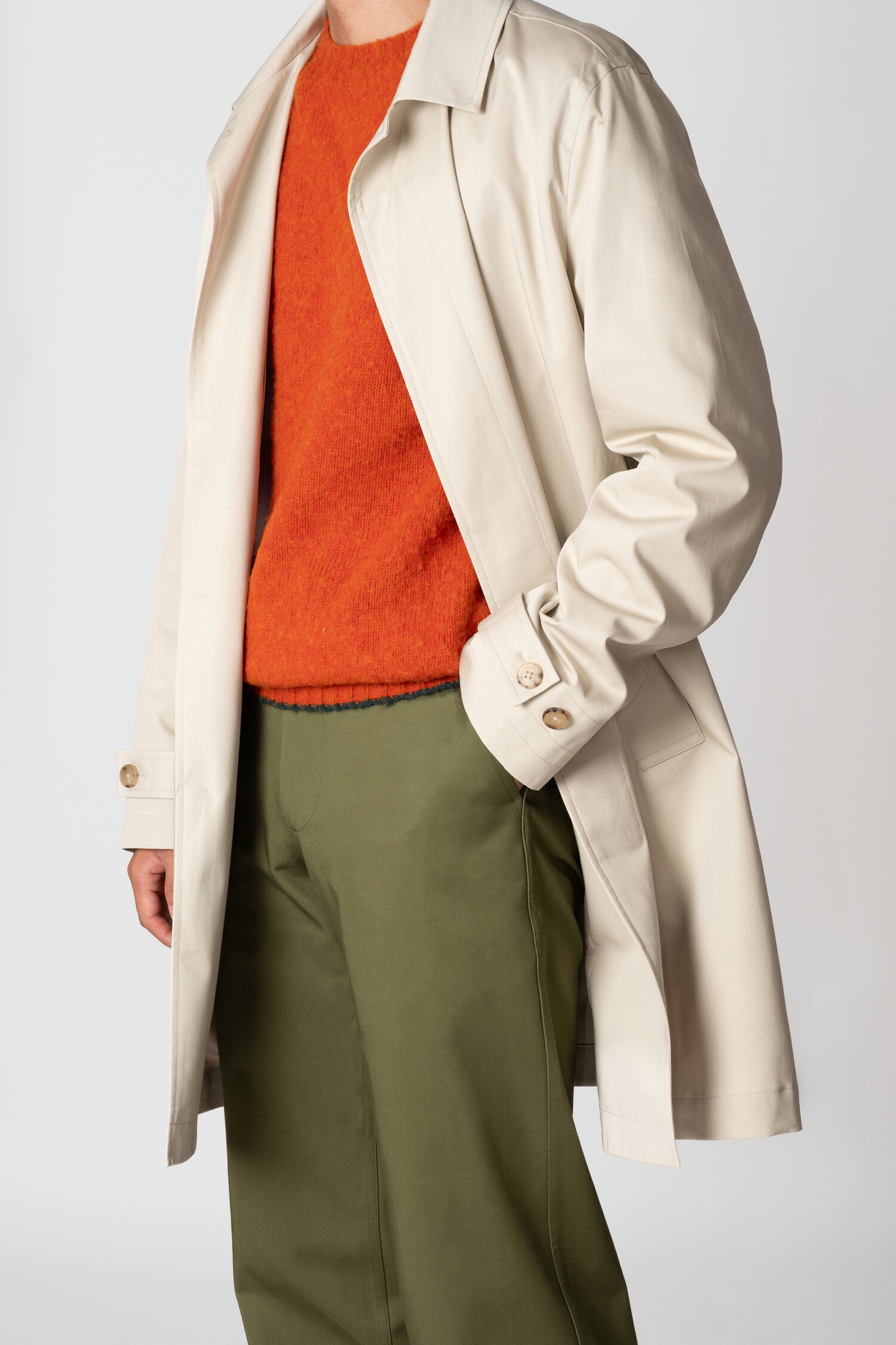옷의 기본에 소재로 가치를 더해 가장 보통의 옷을 만들겠다는 더패브릭의 철학을 토대로 제대로된 치노를 만들기 위해 노력한 끝에 탄생한 제품입니다. 겉감, 안감 모두 오직 치노를 위해 개발된 일본산 소재를 사용했으며 작은 부분까지 상질의 부자재를 사용해 타협하지 않고 만들었습니다. 봉제 또한 기존에 활용하지 않던 새로운 기법들을 도입함으로써 제품 자체에 대한 완성도를 높였으며 경년의 변화를 느끼실 수 있도록 인위적인 워싱은 하지 않았습니다.
