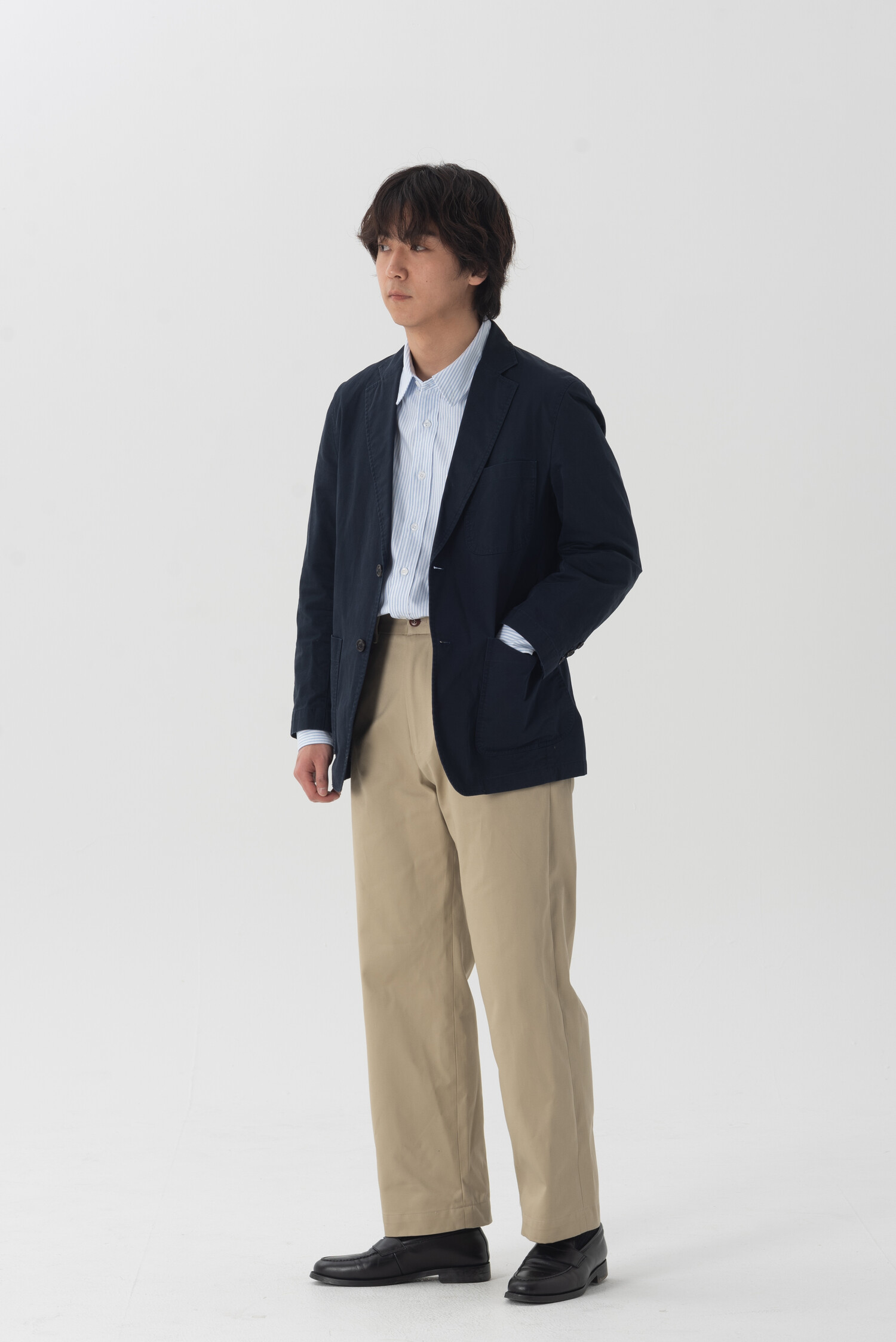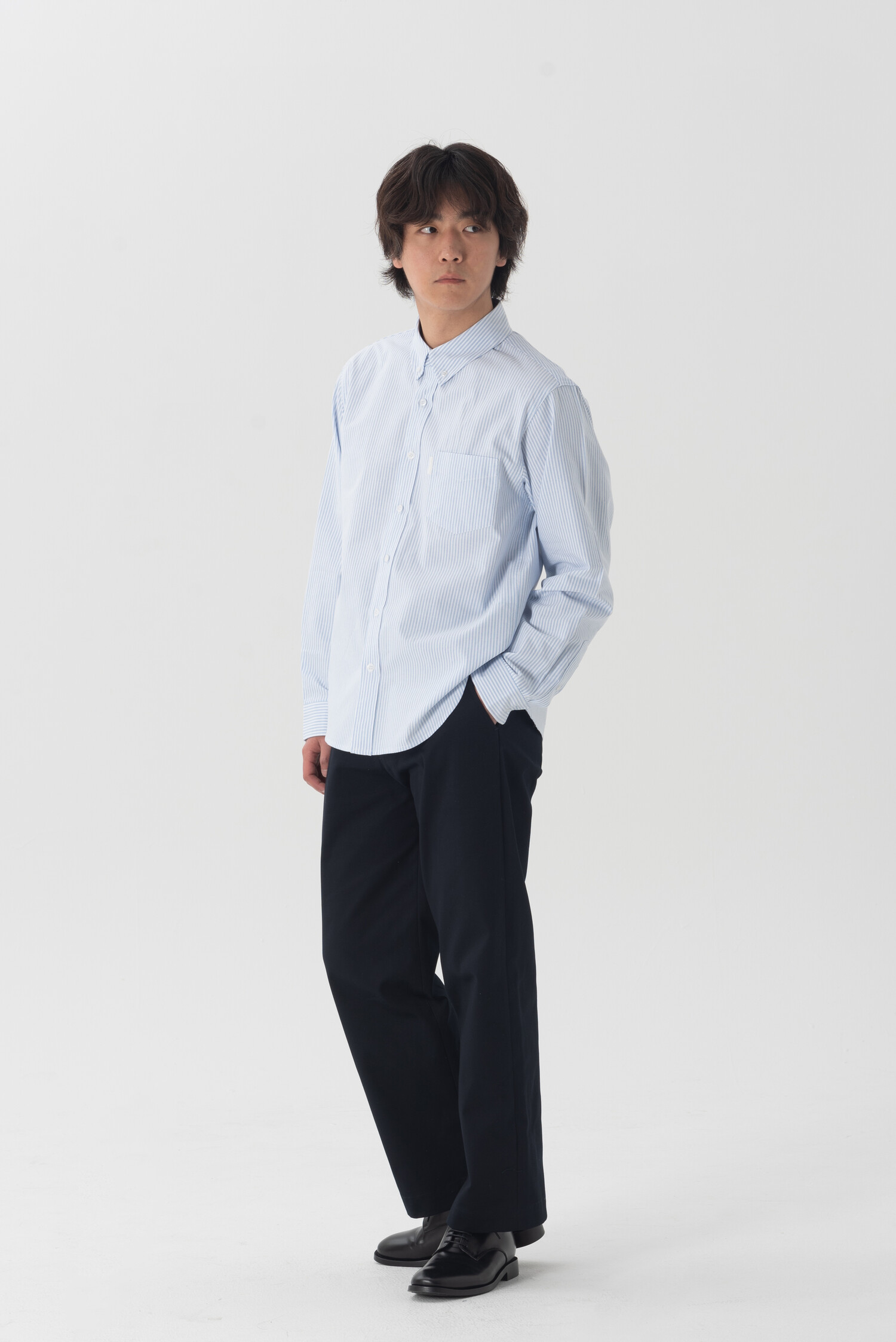 전체적인 외형은 버튼다운 셔츠의 오리지널리티를 따르며 거셋, 포켓, 요크 등에 배색의 원단을 덧댐으로써 그 안에 작은 디테일들을 더했습니다. 실루엣은 레귤러핏입니다. 단품으로도 좋지만, 이너로 착용했을 때까지 고려하여 옷의 형태에 간섭이 되지 않은 선에서 최대한 여유롭게 구성했습니다.