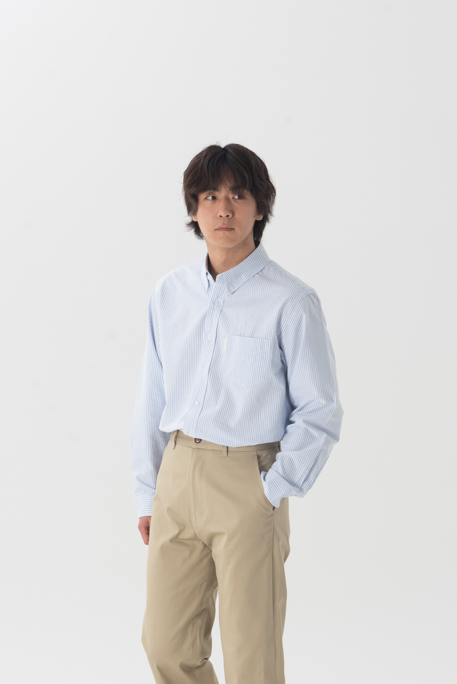높은 밀도를 가진 클래식한 로얄 옥스퍼드 소재를 베이스로 적당한 굵기의 스트라이프를 더해 완성한 소재입니다. 양질의 옥스퍼드가 가진 기분 좋은 착용감을 느낄 수 있으며 약간의 워싱을 통해 특유의 고시감은 중화시켰습니다.