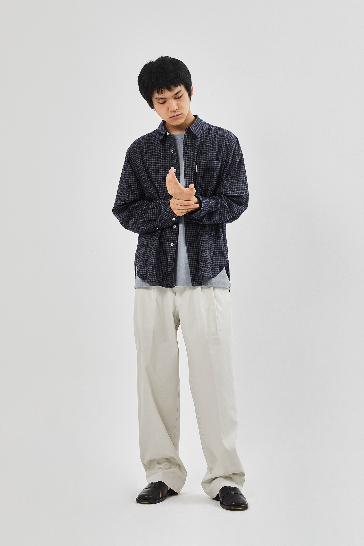 그 어떤 설명보다 체크 셔츠라는 말이 가장 정확한 제품입니다. 체크의 패턴이 과하지 않기 때문에 부담스럽지 않게 입을 수 있으며 단품으로 입어도 좋고 티셔츠 위에 살짝 걸쳐 입어도 좋은 제품입니다. 봄부터 여름까지 추천합니다.