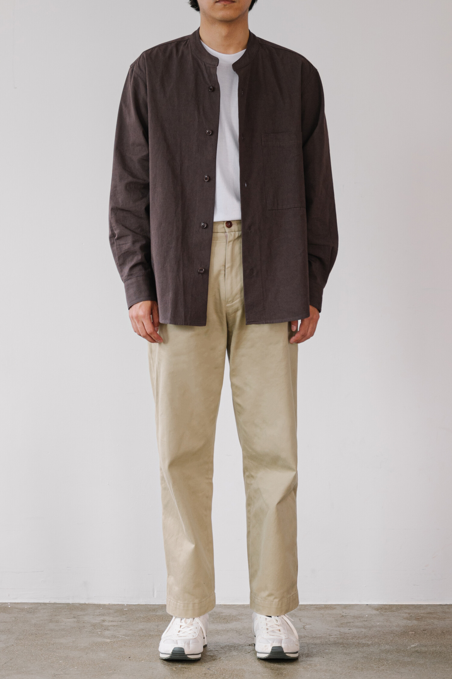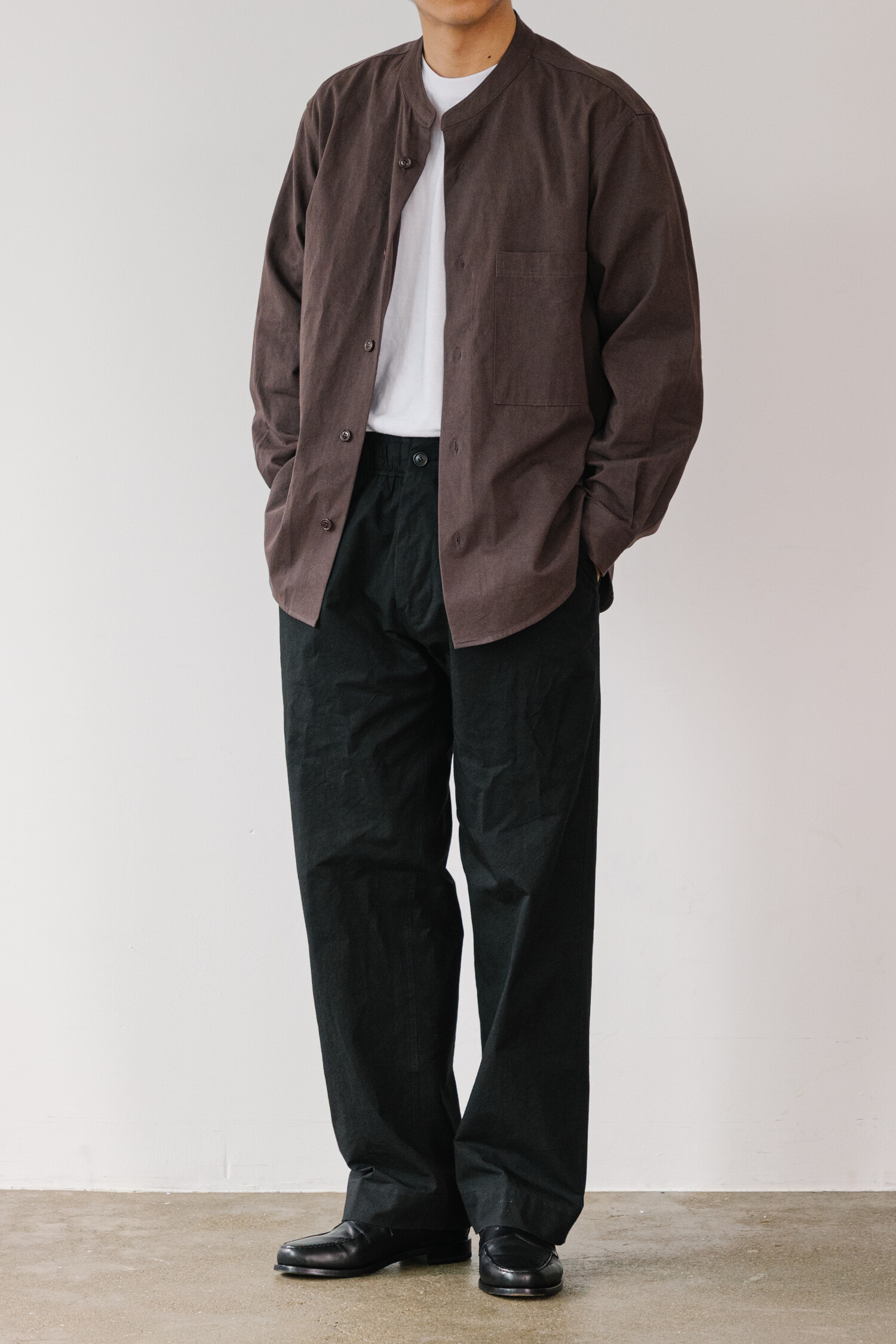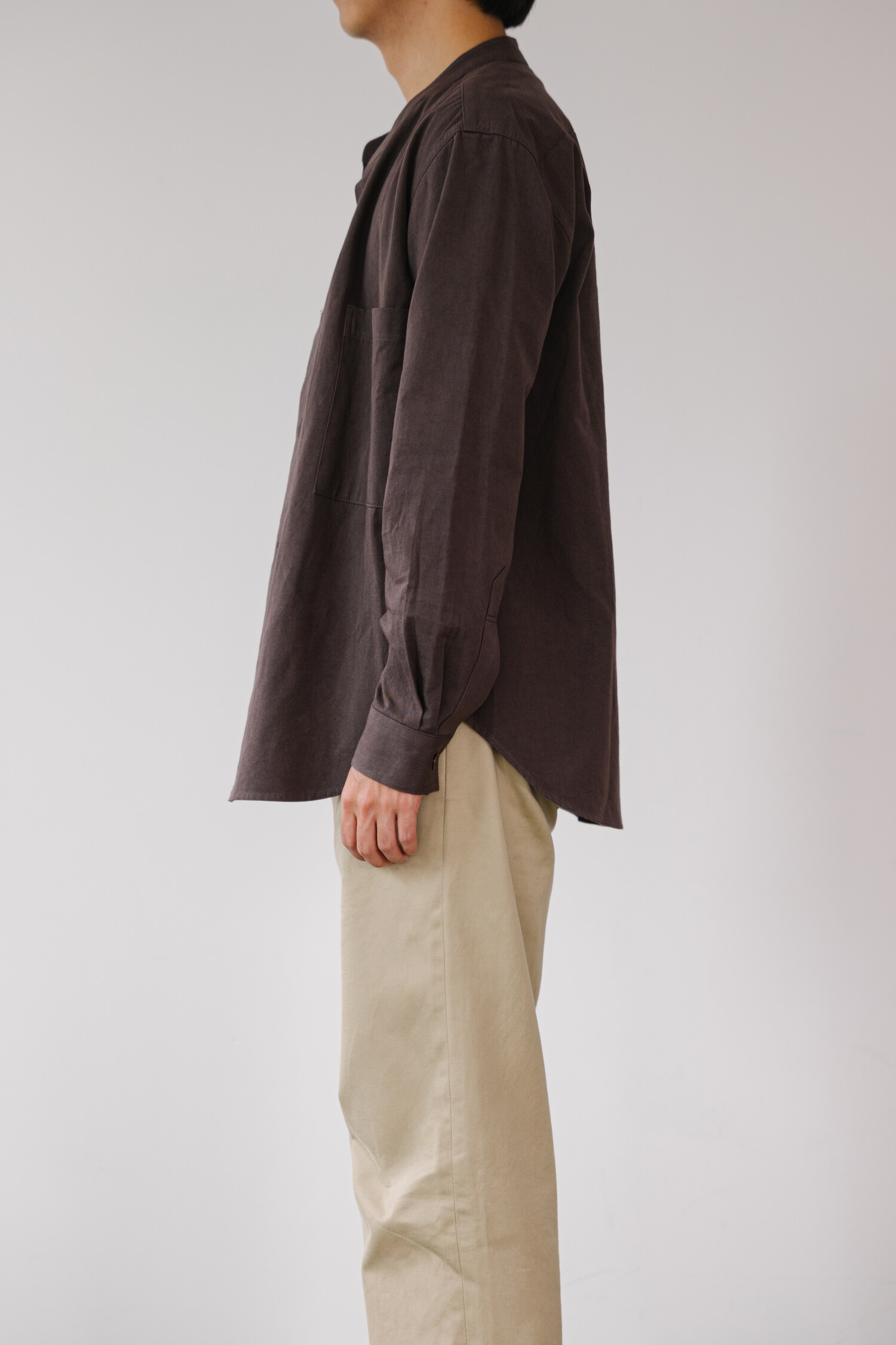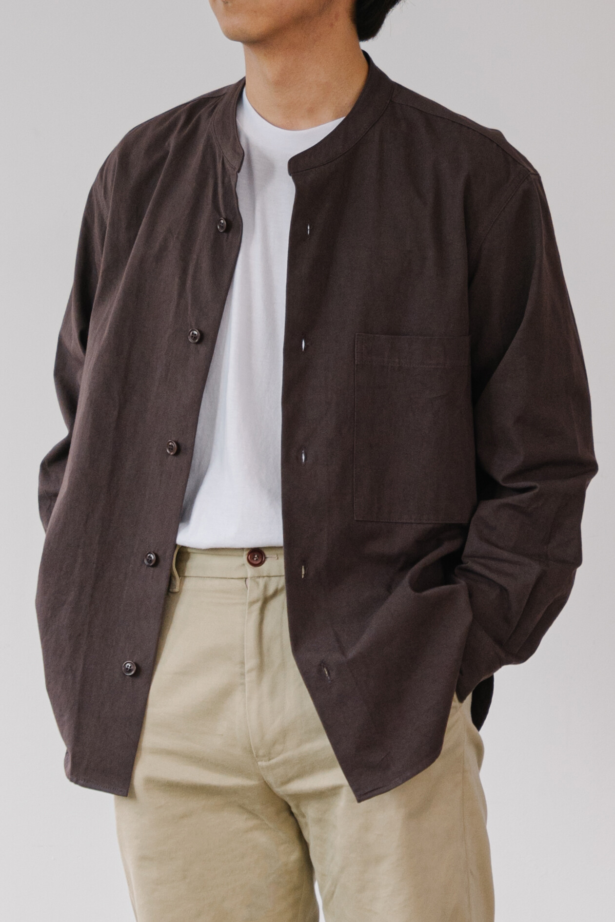 SUNNY DRY TWILL STAND COLLAR SHIRTS MAHOGANY