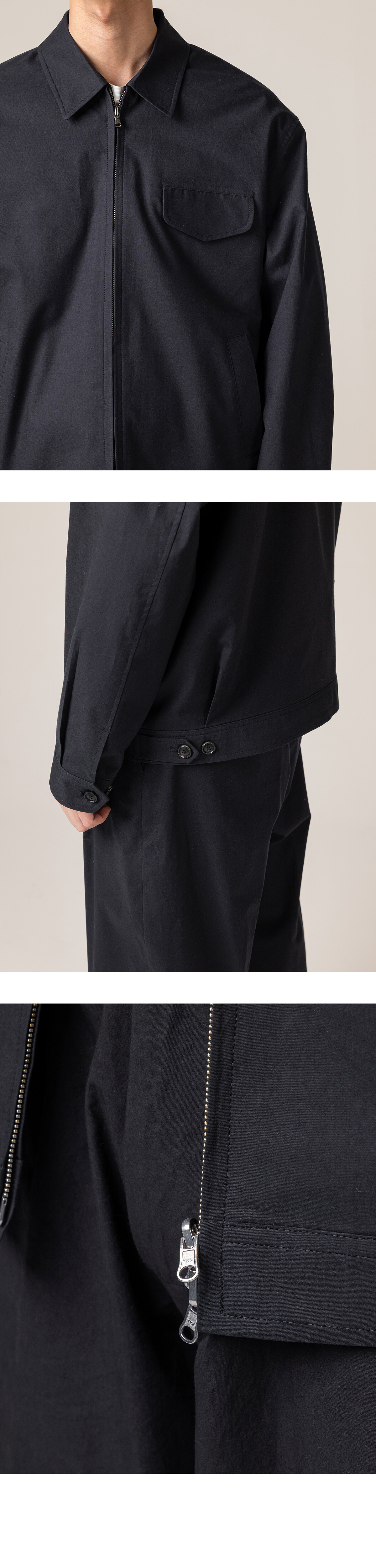 가볍게 걸칠 수 있는 아우터는 많습니다. 하지만 대부분은 성격이 분명합니다. 워크이거나, 스포츠이거나. 우리는 그 중간을 기준으로 블루종을 만들었습니다. 셔츠처럼 부담 없이 꺼내 입을 수 있으면서도, 상의로서의 균형은 유지되는 구조. 이번에는 같은 구조를 유지하면서, 조금 더 단정하게 입을 수 있도록 했습니다.