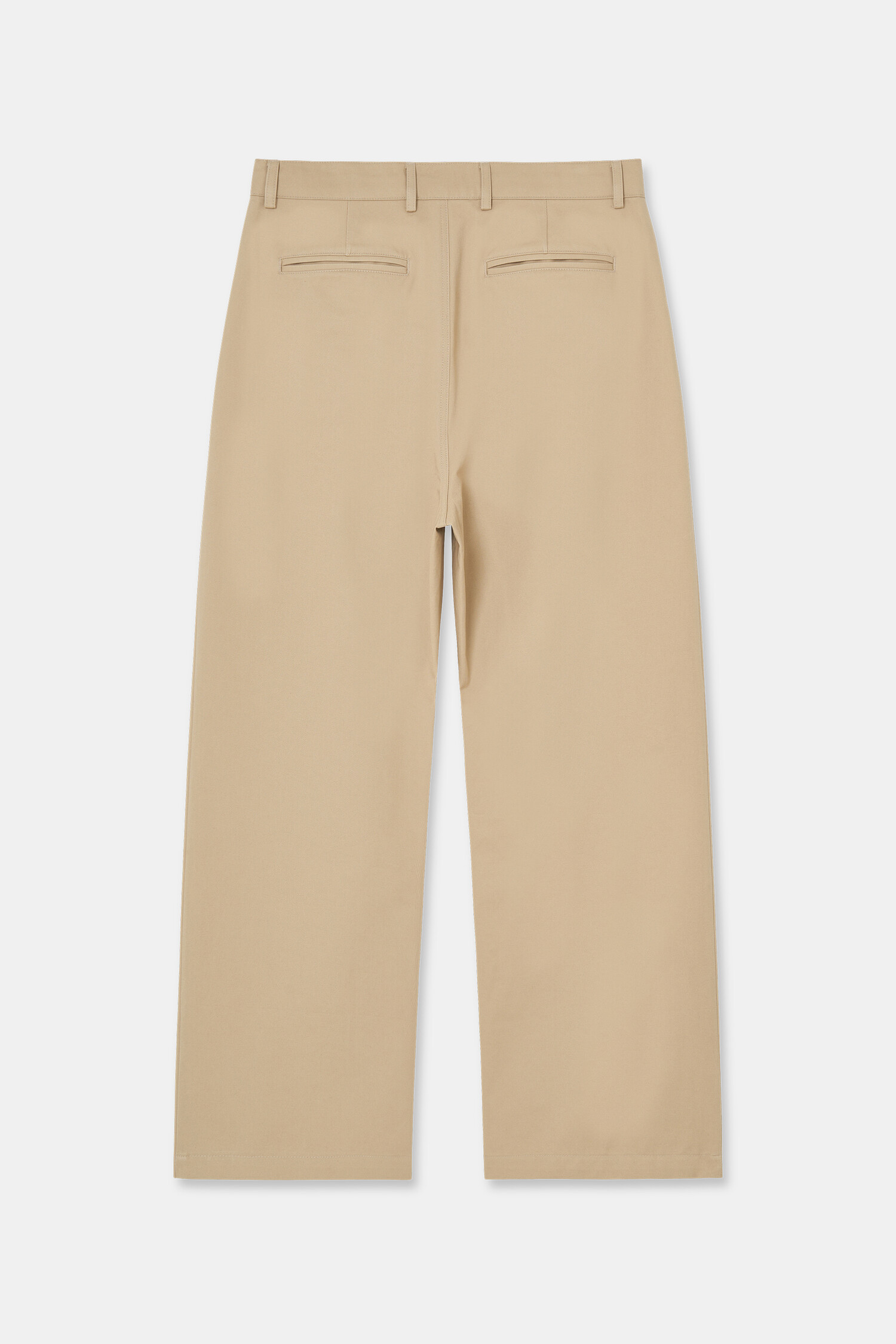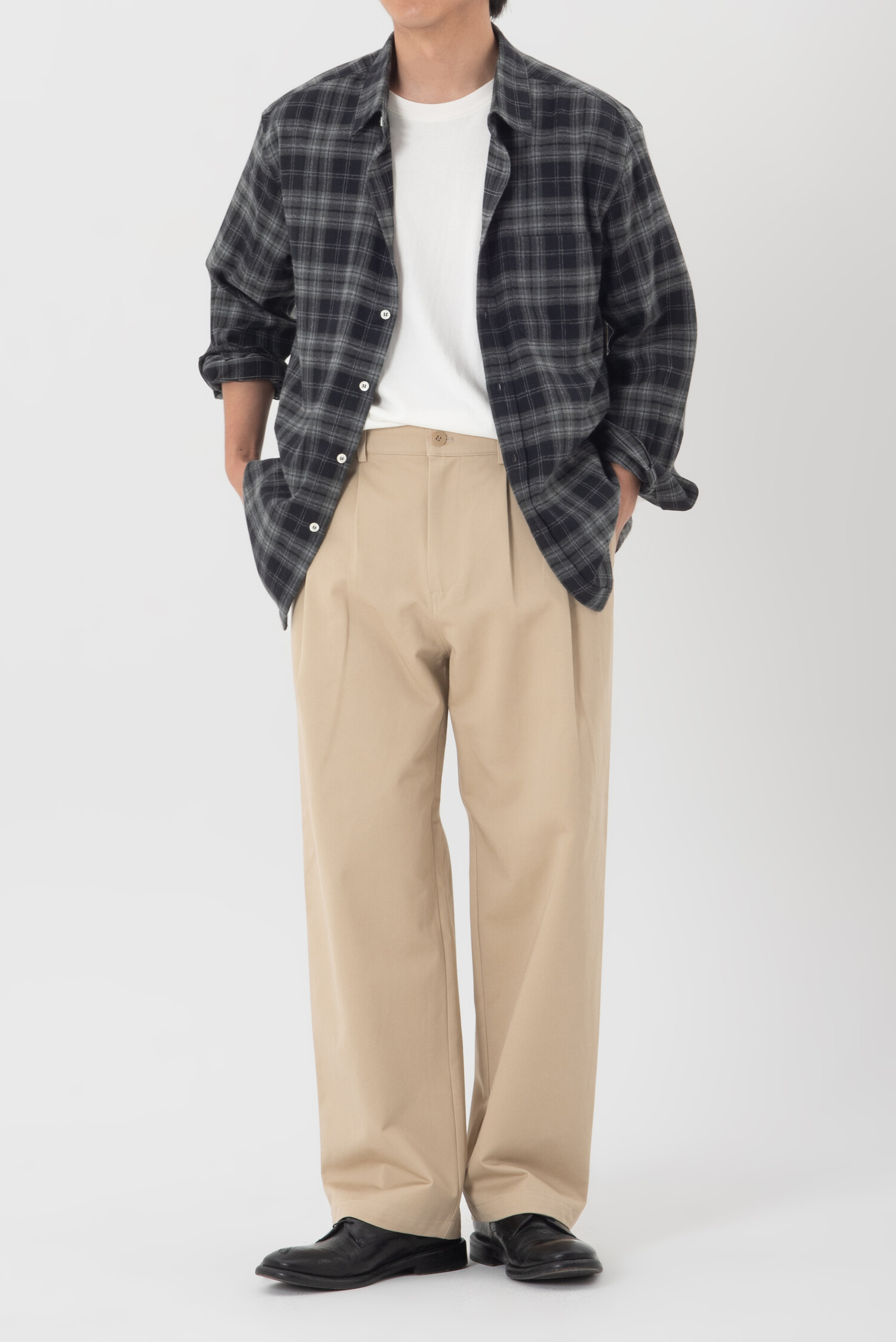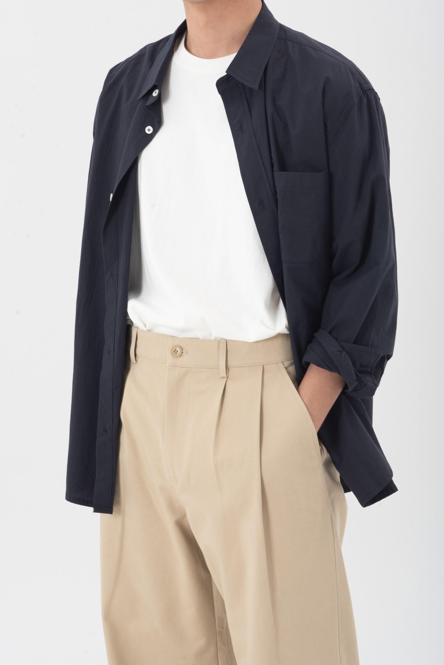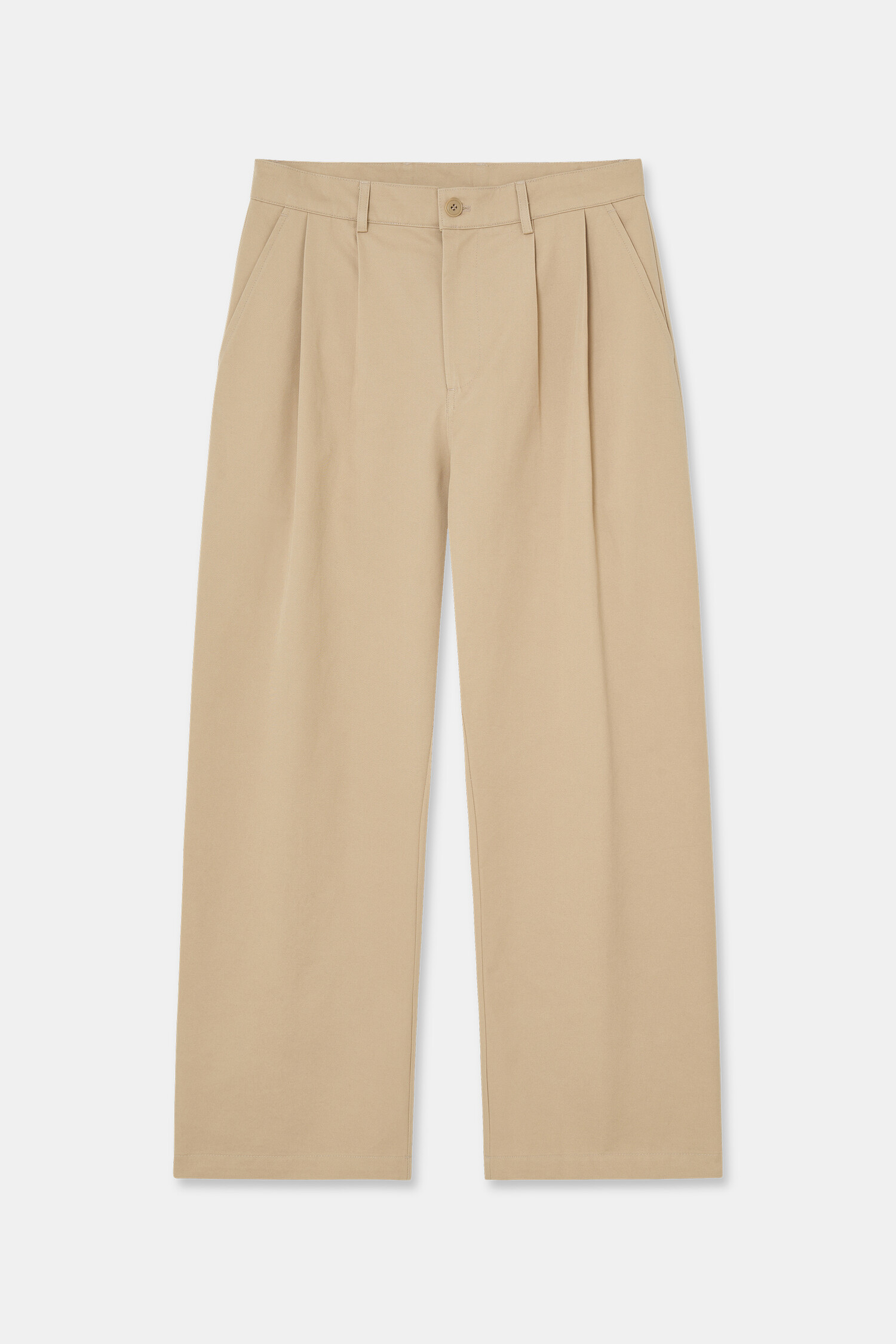 깊게 자리잡은 두 개의 주름이 매력적인 치노입니다. 두 개의 주름은 각기 다른 깊이로 자리잡고 있어 자연스러운 볼륨감을 만듭니다. 레귤러핏 실루엣으로 편안하면서도 스타일리시한 무드의 연출이 가능합니다. 소재는 밀도감 높은 코튼 소재를 미국의 캐주얼 브랜드를 모티브로 후가공을 진행해 세탁 이후의 러프한 질감을 표현했으며 무게감있으면서도 부드러운 느낌의 착용감을 느낄 수 있습니다.