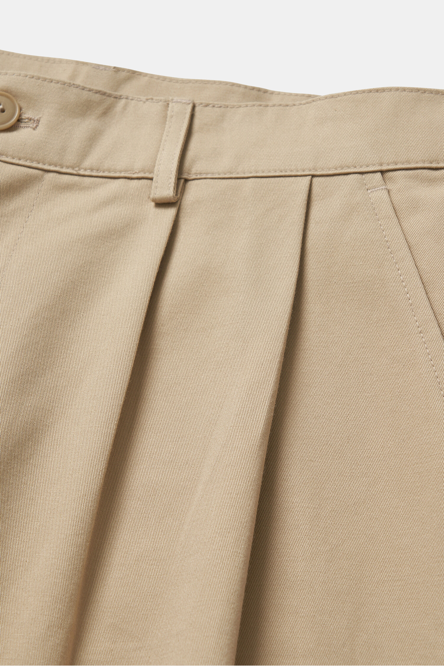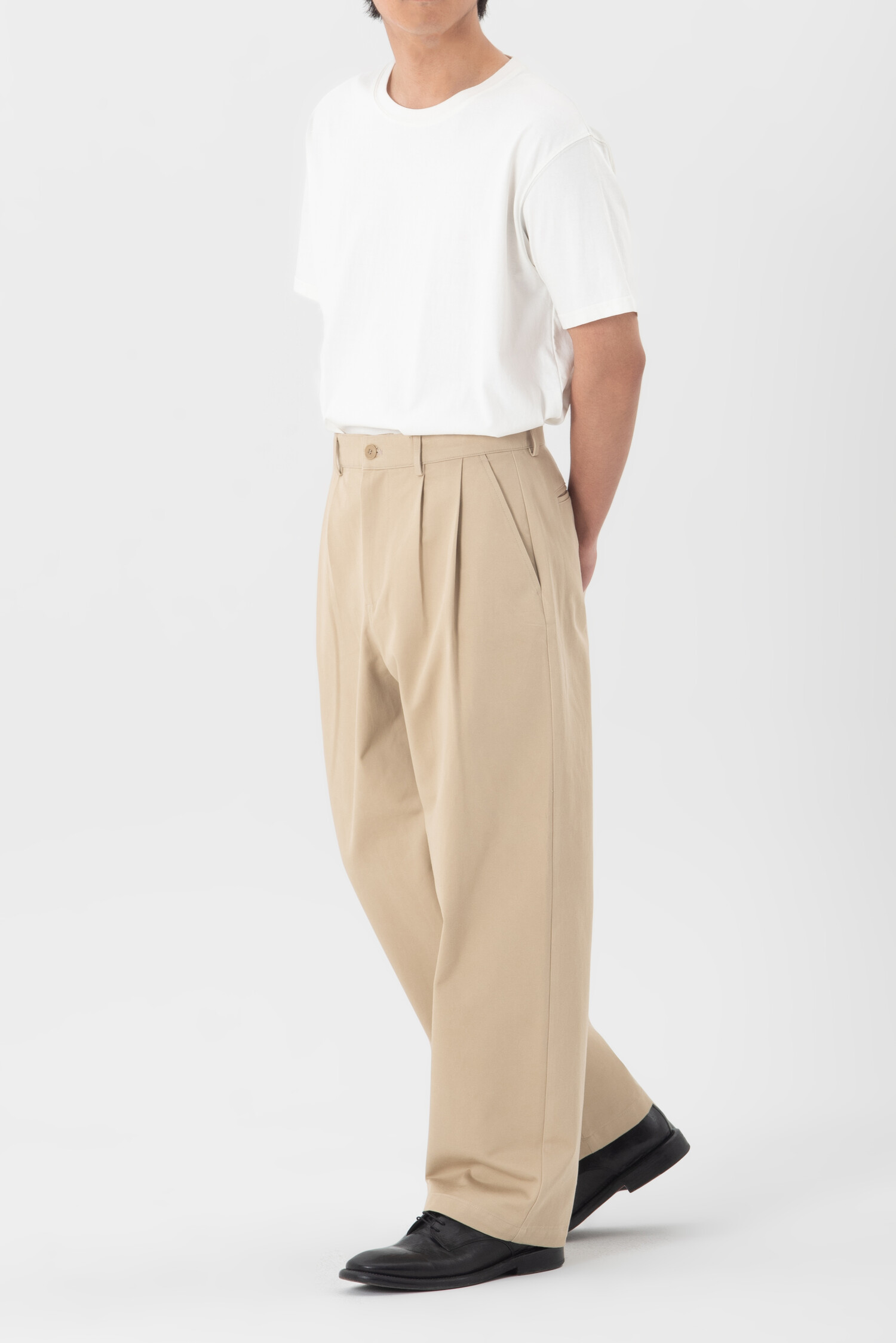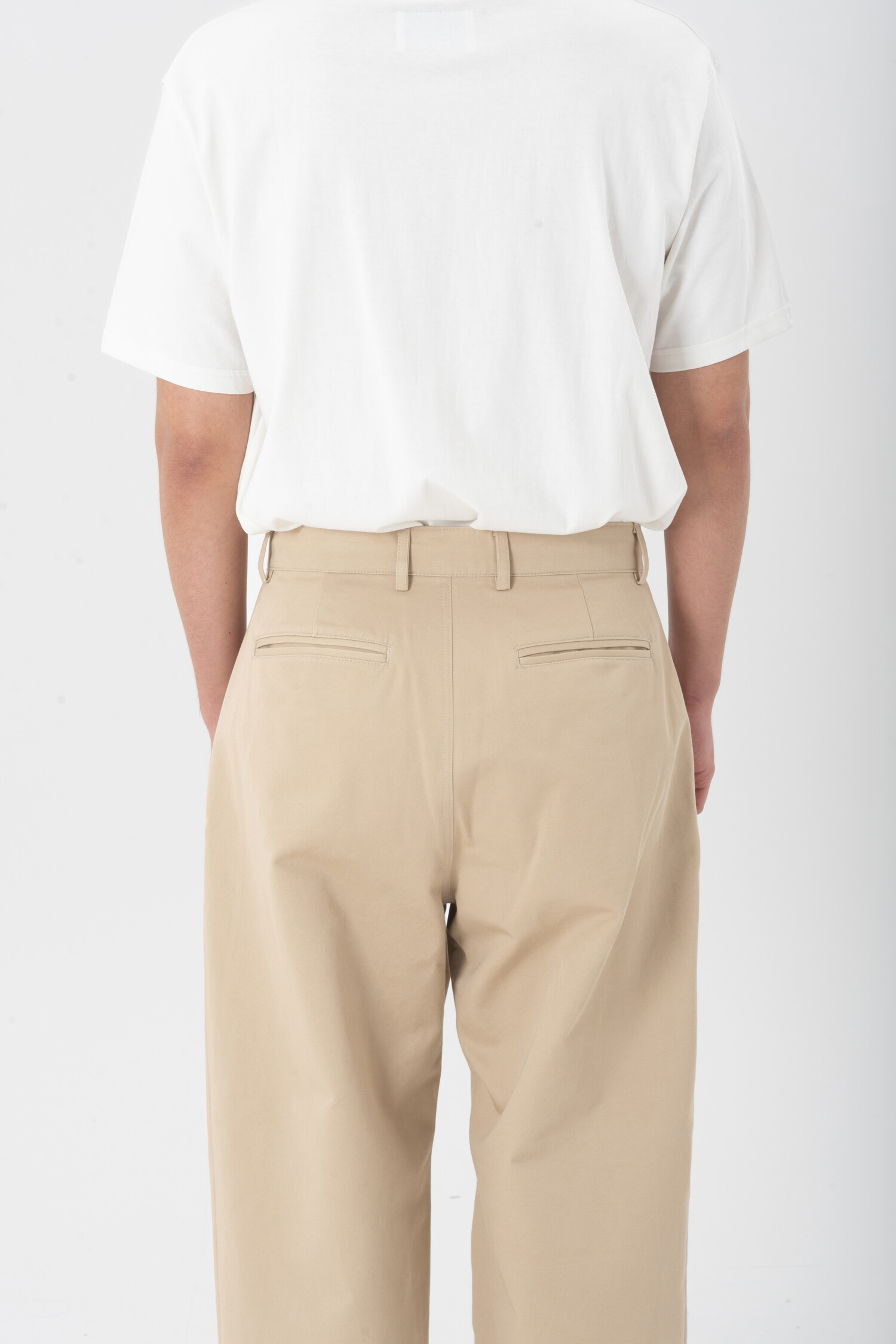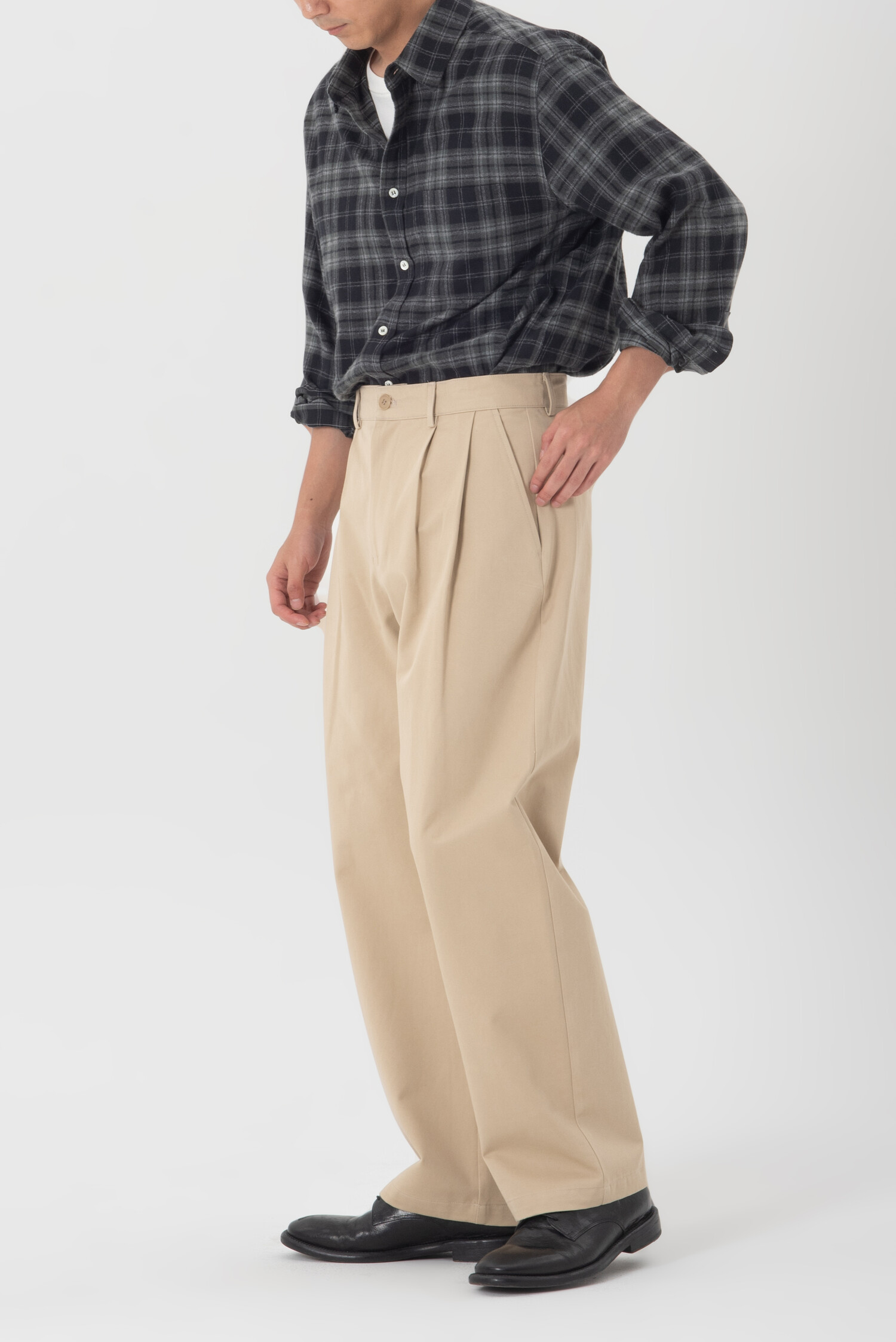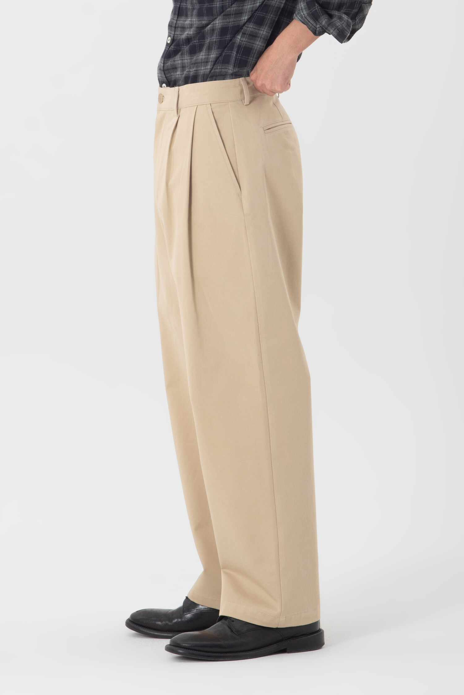 깊게 자리잡은 두 개의 주름이 매력적인 치노입니다. 두 개의 주름은 각기 다른 깊이로 자리잡고 있어 자연스러운 볼륨감을 만듭니다. 레귤러핏 실루엣으로 편안하면서도 스타일리시한 무드의 연출이 가능합니다. 소재는 밀도감 높은 코튼 소재를 미국의 캐주얼 브랜드를 모티브로 후가공을 진행해 세탁 이후의 러프한 질감을 표현했으며 무게감있으면서도 부드러운 느낌의 착용감을 느낄 수 있습니다.