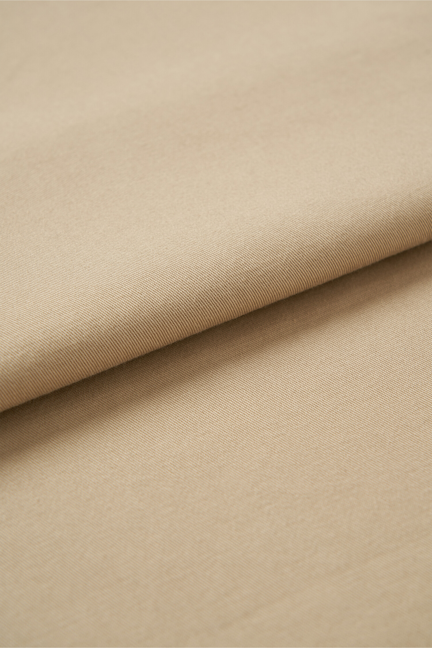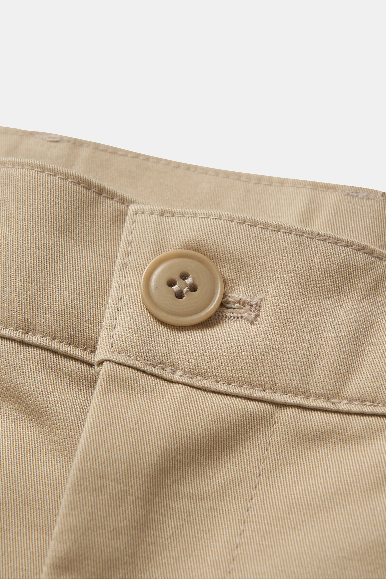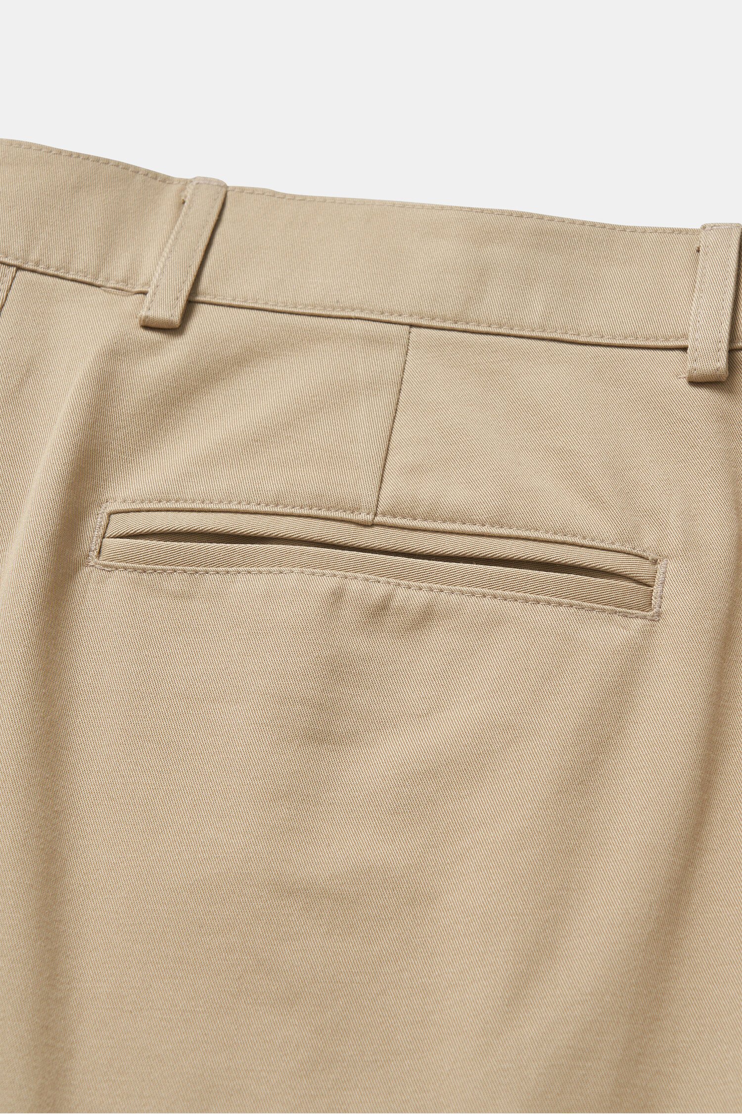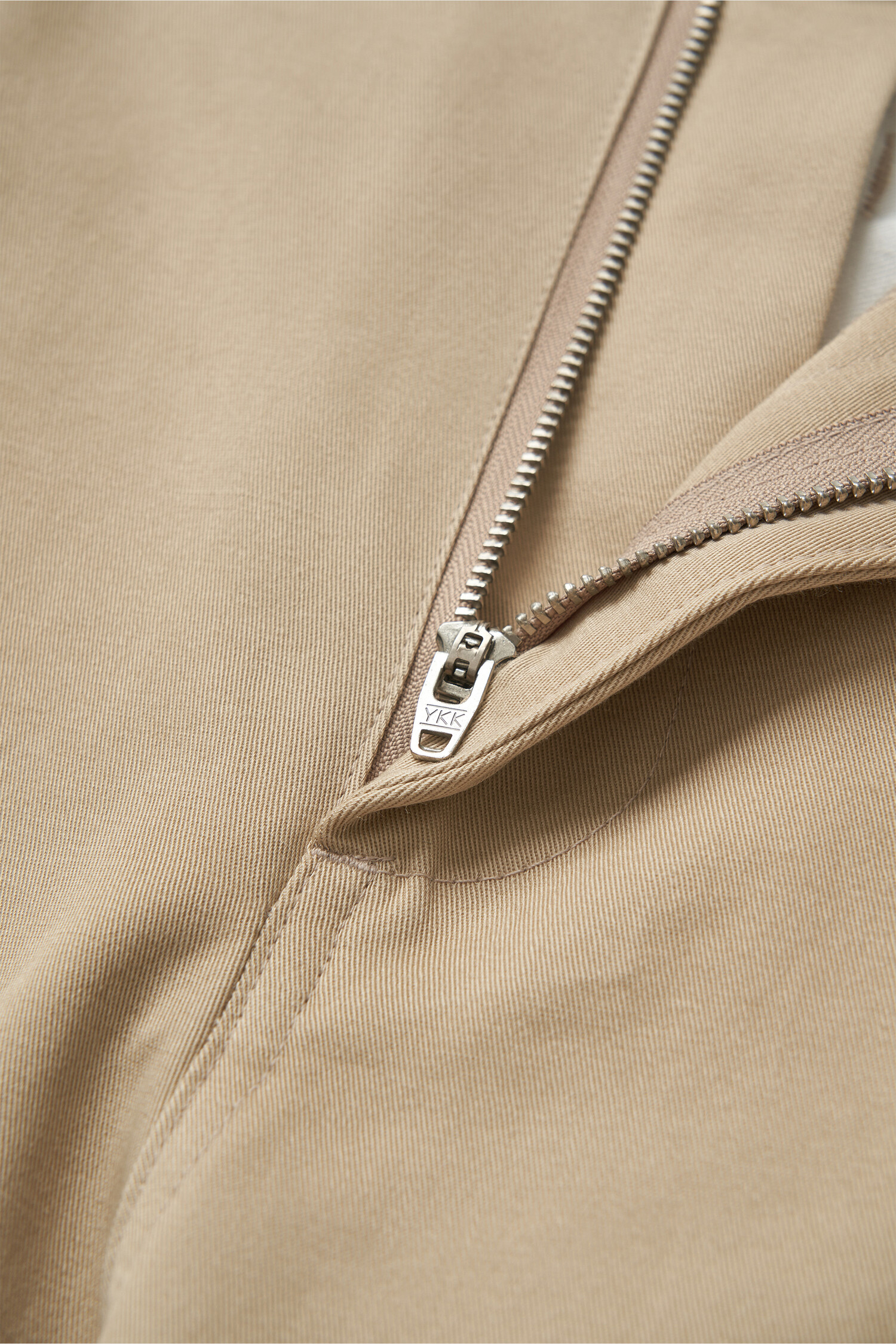 깊게 자리잡은 두 개의 주름이 매력적인 치노입니다. 두 개의 주름은 각기 다른 깊이로 자리잡고 있어 자연스러운 볼륨감을 만듭니다. 레귤러핏 실루엣으로 편안하면서도 스타일리시한 무드의 연출이 가능합니다. 소재는 밀도감 높은 코튼 소재를 미국의 캐주얼 브랜드를 모티브로 후가공을 진행해 세탁 이후의 러프한 질감을 표현했으며 무게감있으면서도 부드러운 느낌의 착용감을 느낄 수 있습니다.