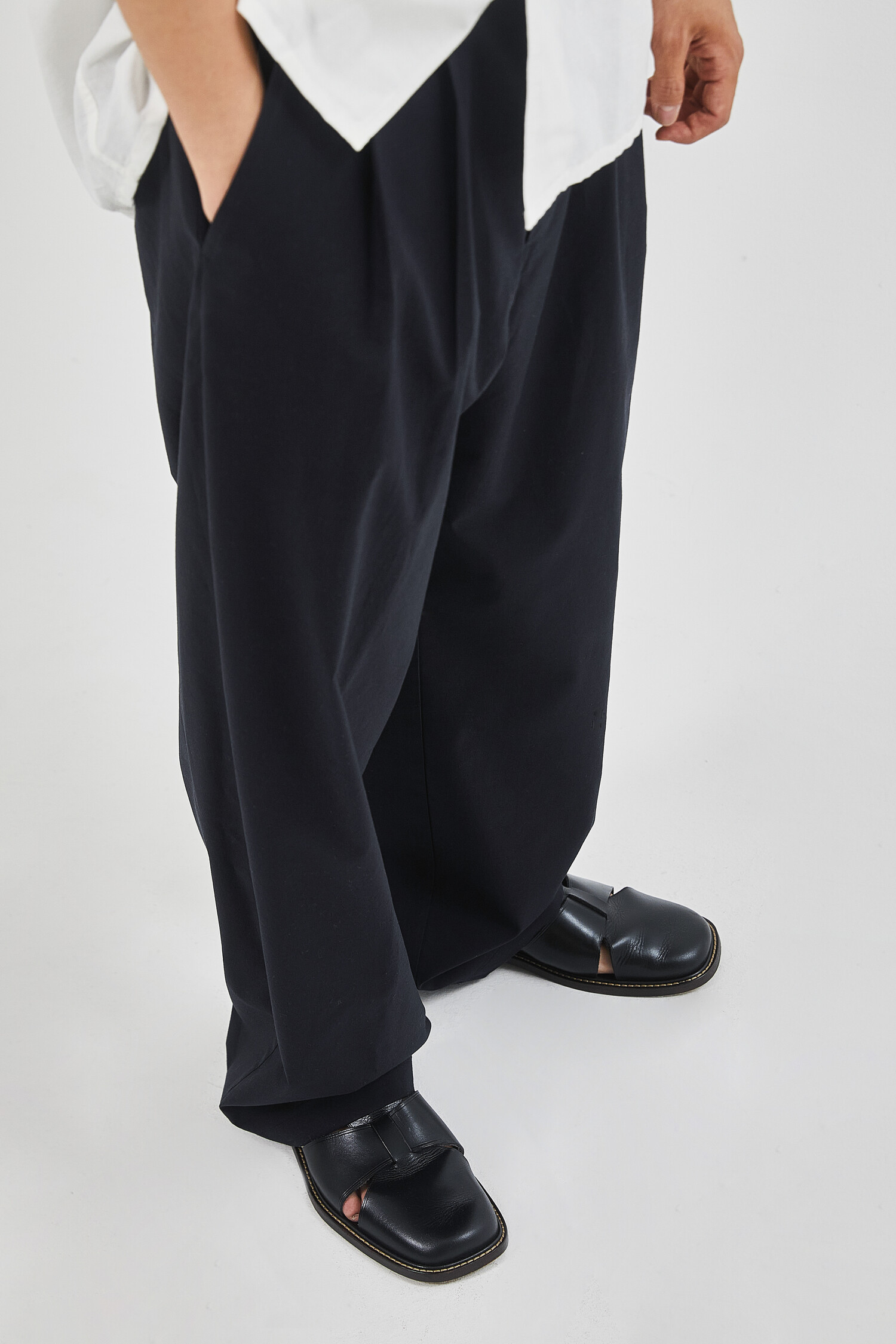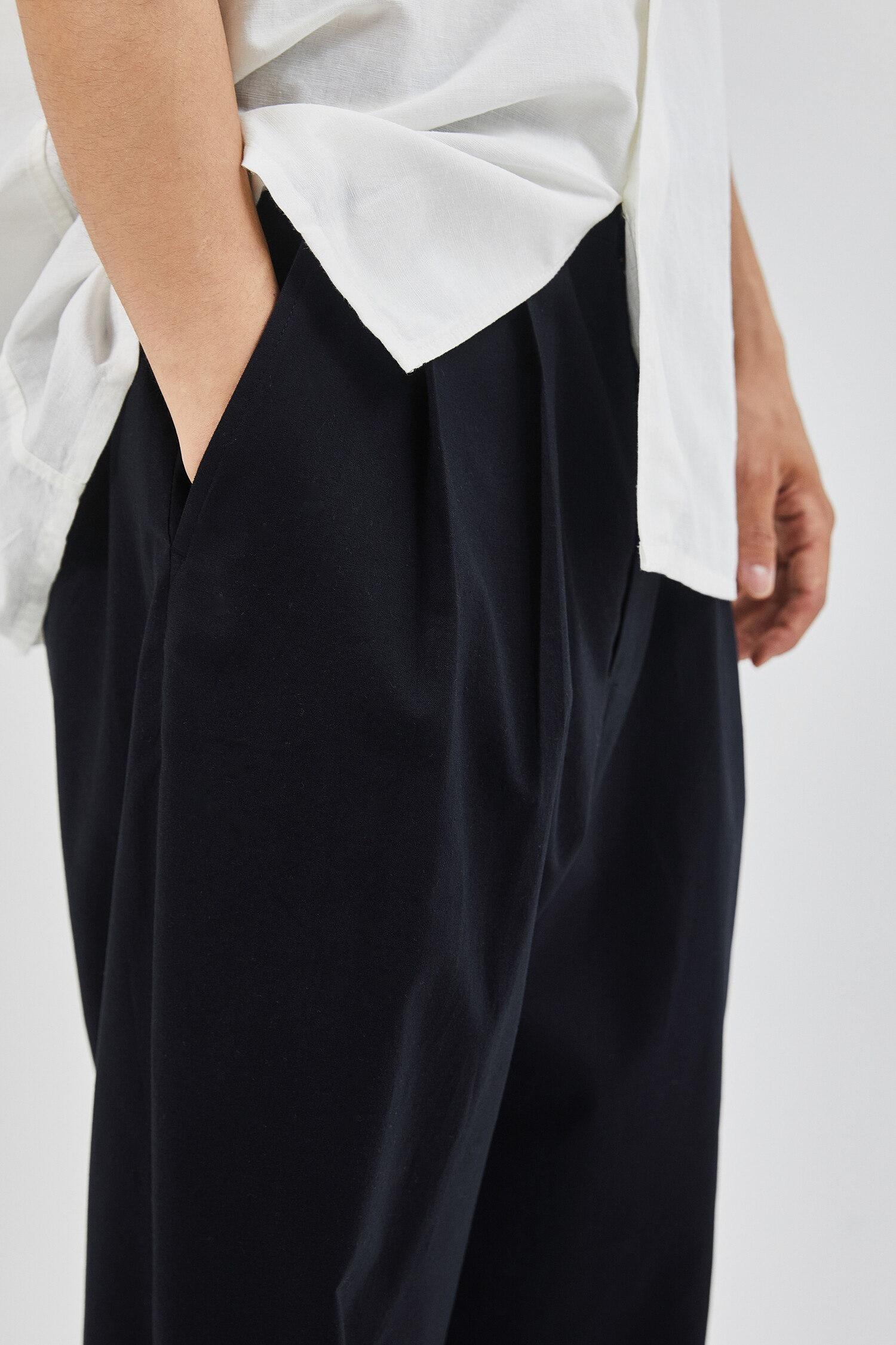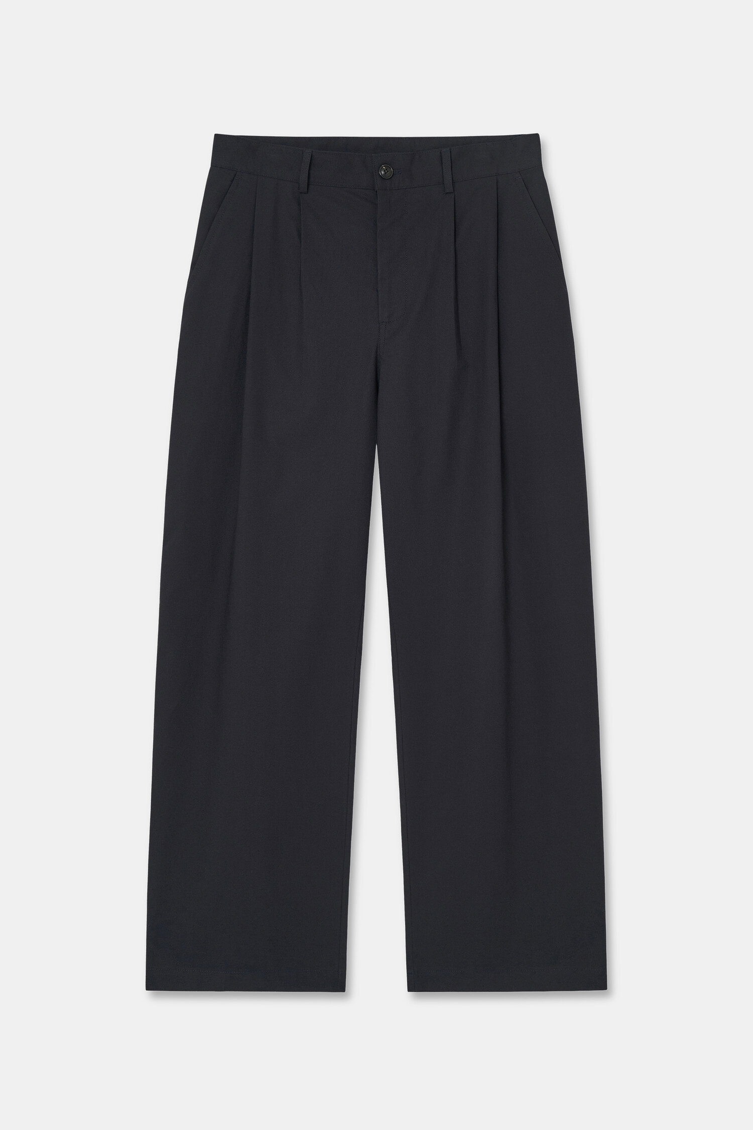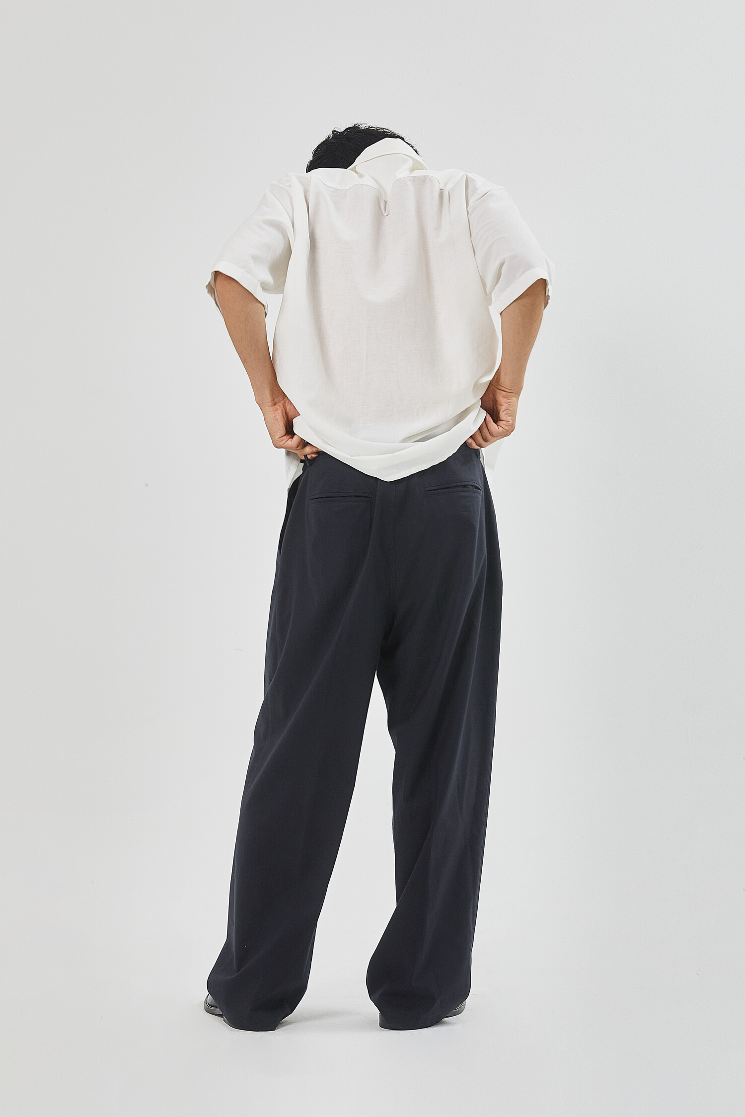 VINTAGE POPLIN TWO TUCKED TROUSERS NAVY
