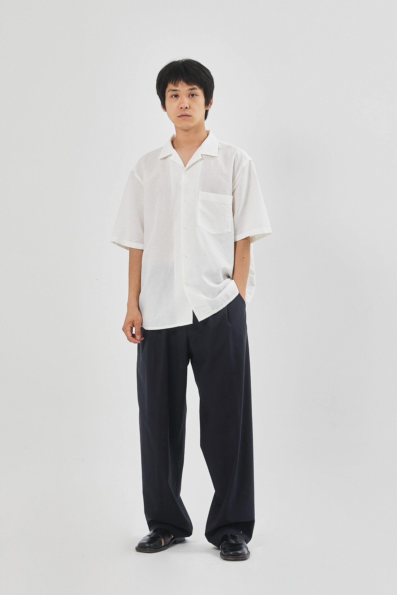 깊게 자리잡은 두 개의 주름이 매력적인 트라우저입니다. 볼륨감있는 레귤러핏 실루엣으로 편안하면서도 스타일리시한 무드의 연출이 가능합니다. 소재는 일본산 포플린소재로 빈티지 가공을 통해 매력적인 거친 질감을 표현했습니다. 시간이 지날수록 그 느낌은 깊어지며 편직 과정에서 특수한 공법을 사용해 코튼 100%임에도 불구하고 스트레치성을 가지고 있어 편안한 착용감을 느끼실 수 있습니다.