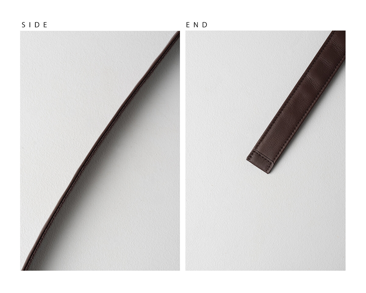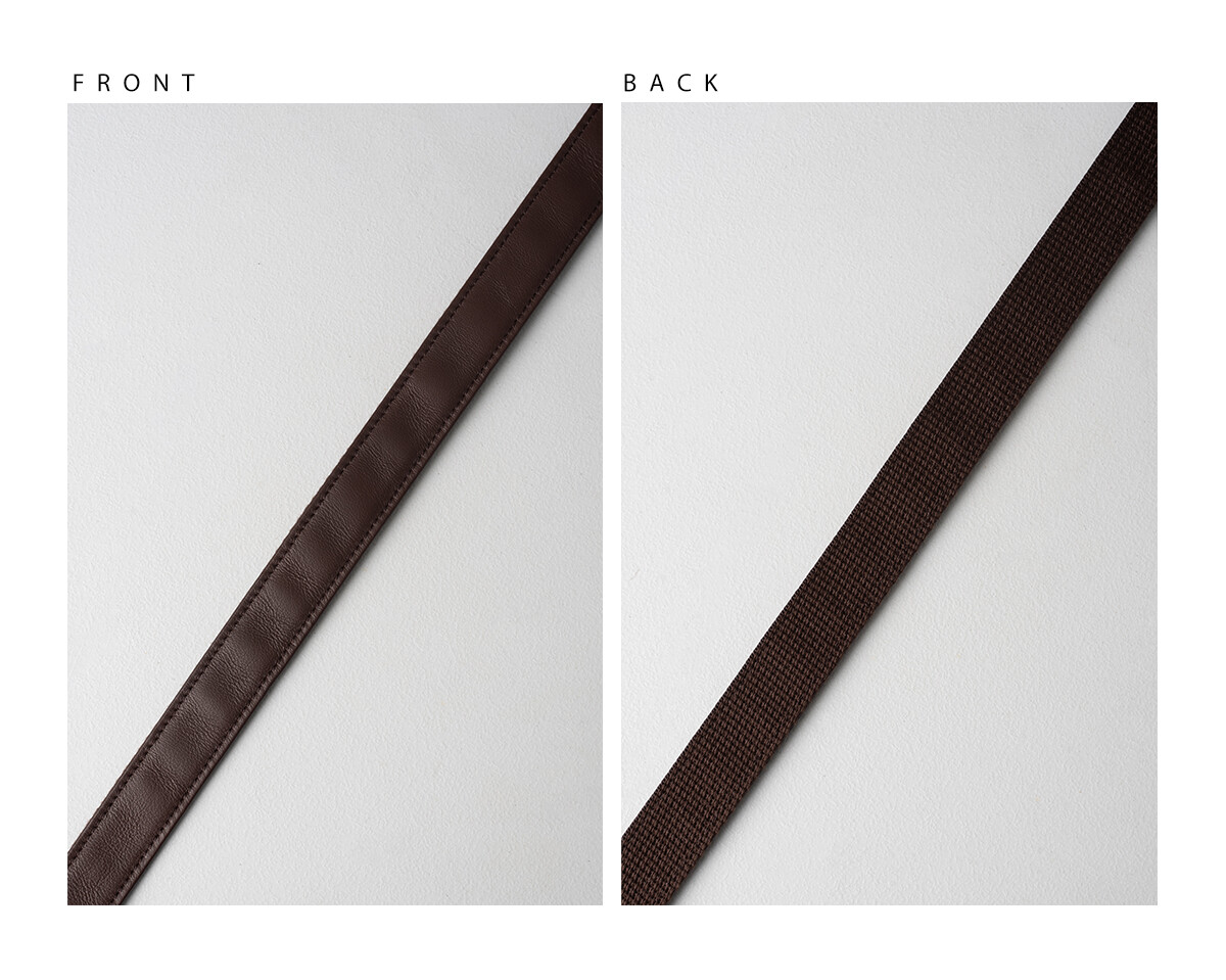 - 끈의 겉면은 매트한 질감의 민자 천연 소가죽, 안쪽은 웨빙으로 구성