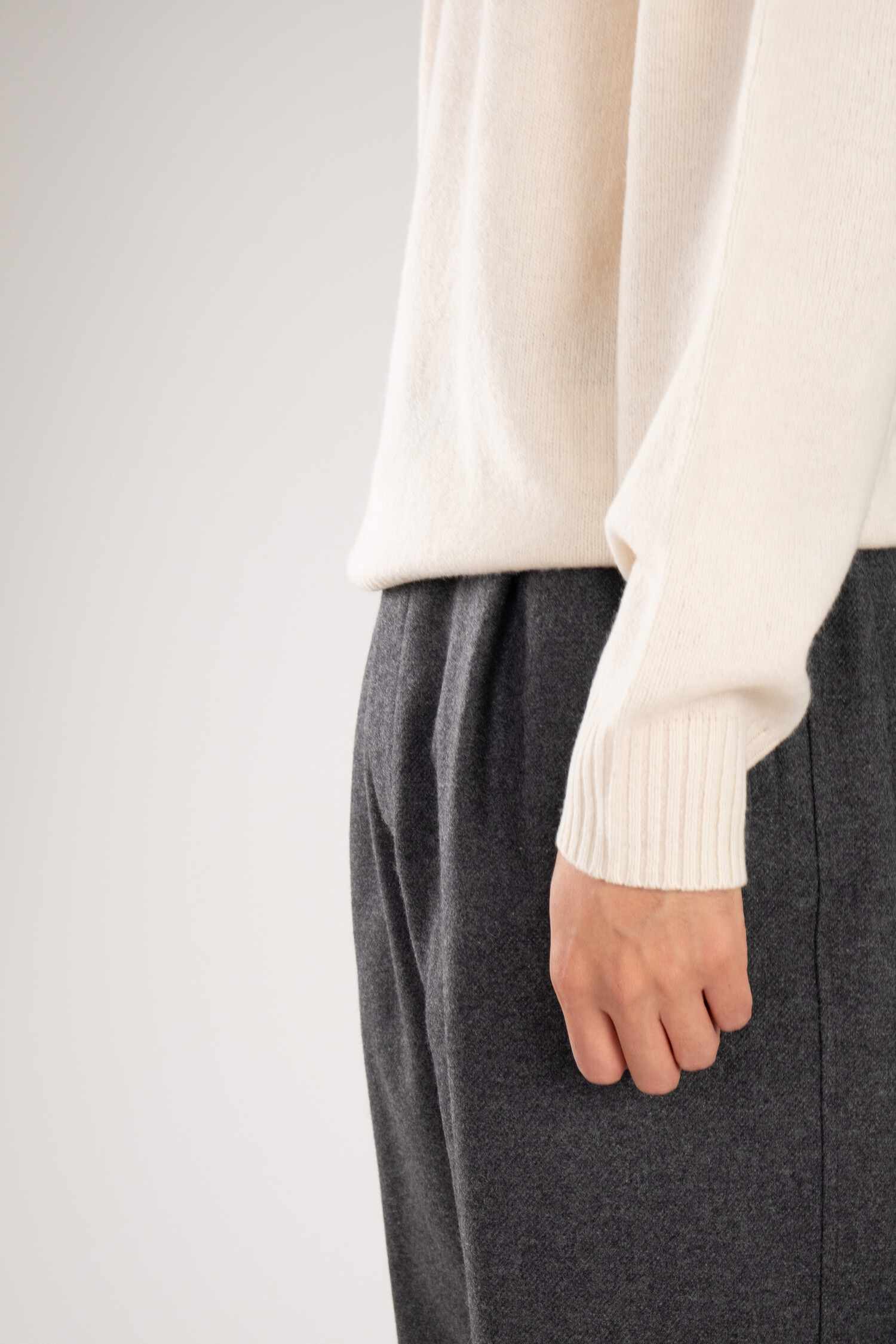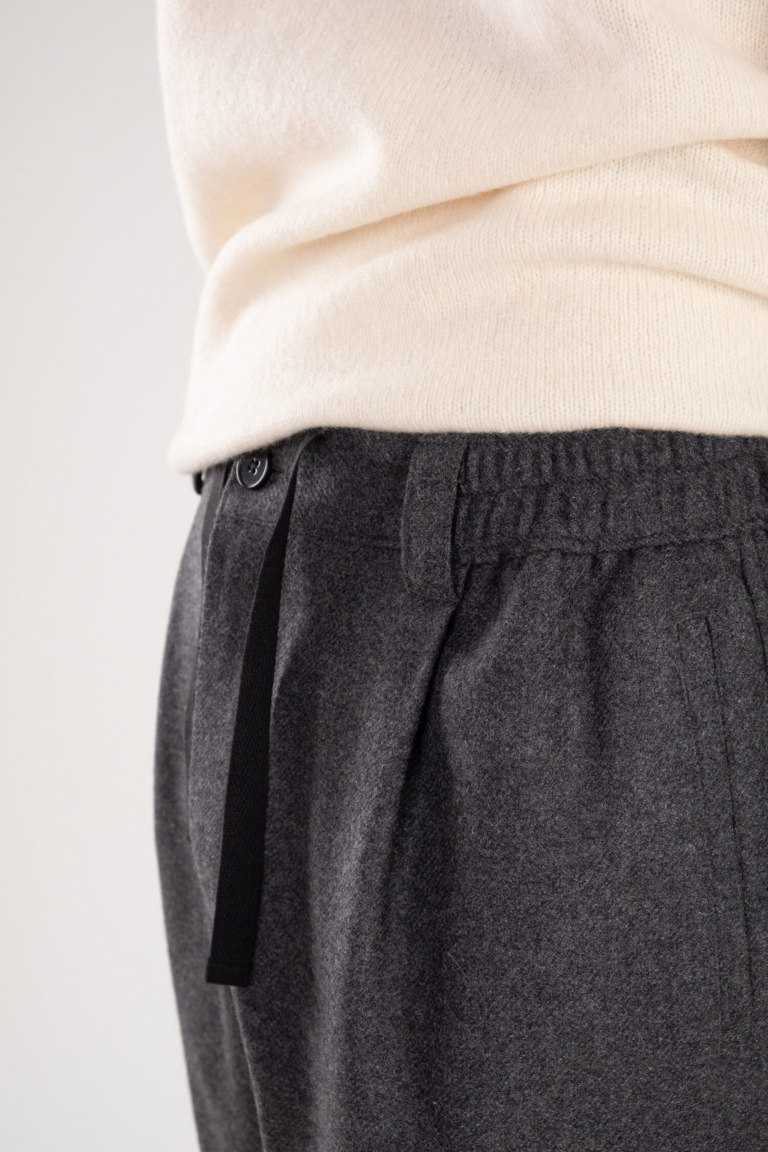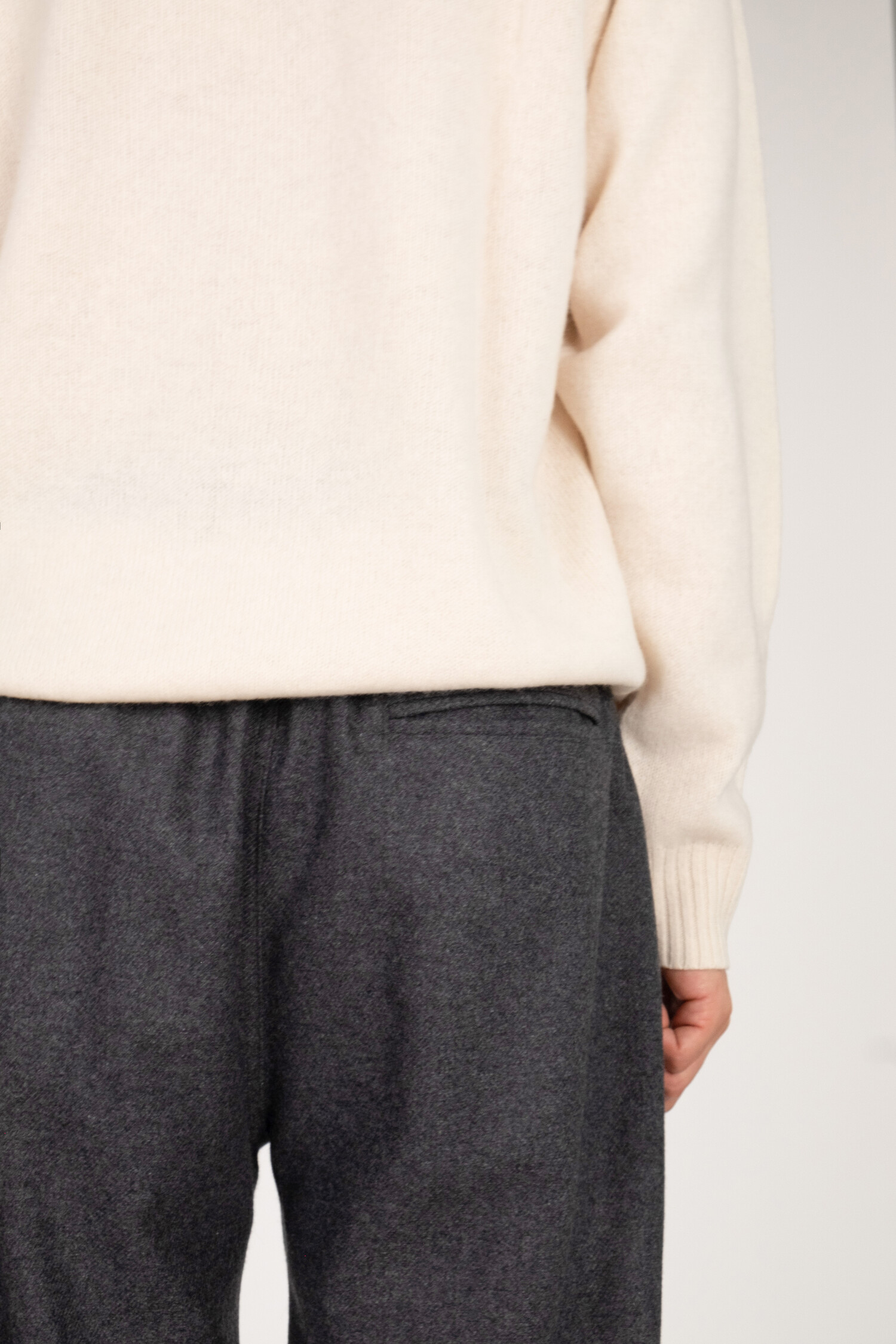▶ 겨울철 자주 손이 갈 수 있는 데일리팬츠를 목표로 만든 울 라운지팬츠입니다. 100년이 넘는 시간 동안 울 원단을 편직한 이태리 FORTUNY사의 고급울 사용해 제작된 울 혼방 원단을 사용했습니다. 따뜻한 소모의 울을 트윌 조직으로 편직해 은은한 조직감이 돋보이며, 엘라스텐사의 스트레치가 소량 함유되어 활동하기가 편합니다. 허리 부분은 하프 밴딩으로 사이즈에 부담없이 착용하기 좋습니다. 앞 부분에 자리잡은 주름으로 자연스러운 레귤러핏을 완성했습니다.
