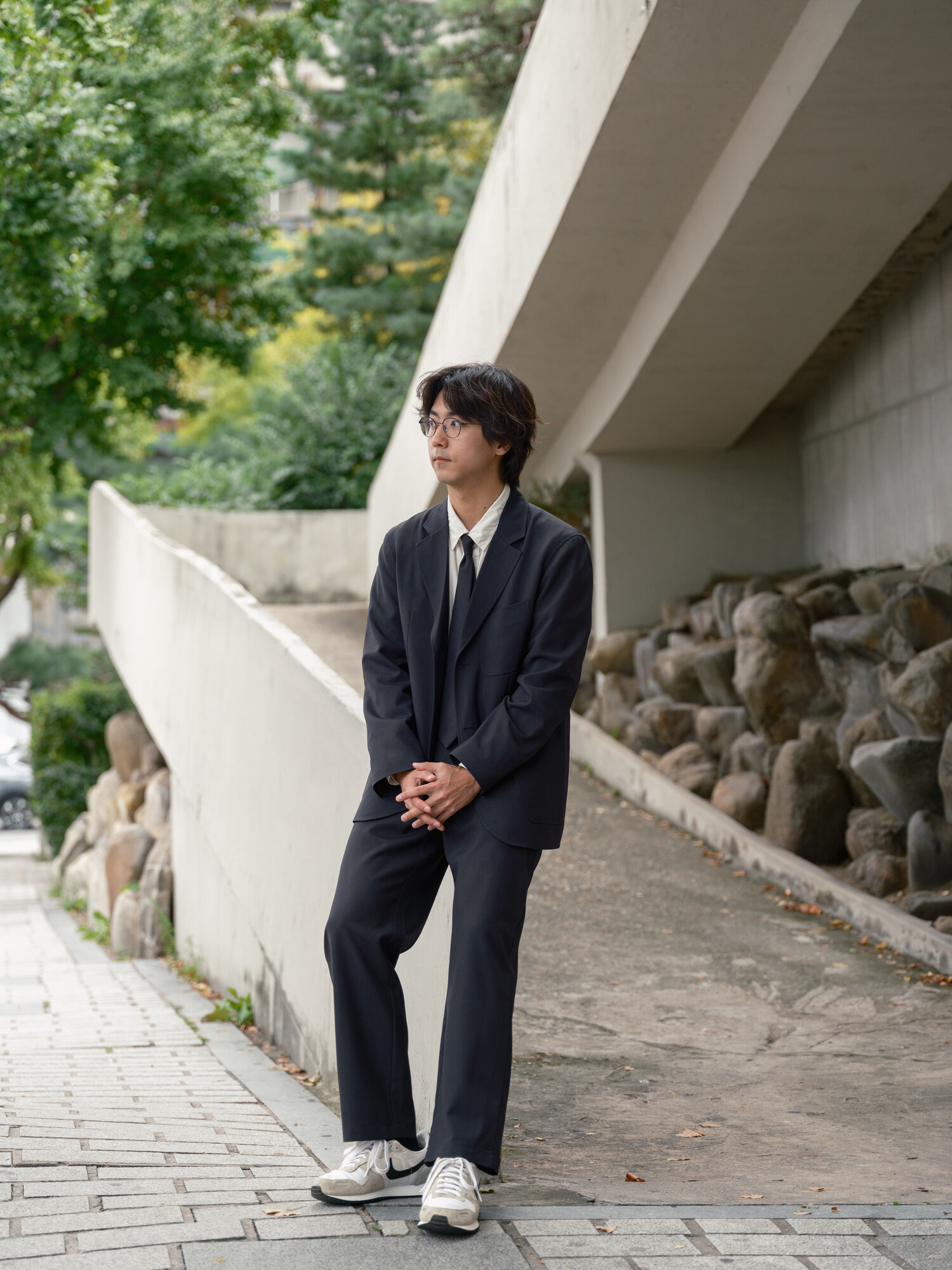 현대 시대의 오피스에 어울리는 셋업입니다. 흔히 우리가 사무실이라 부르는 전통적인 개념의 오피스는 확장되어 장소의 경계가 사라진지 오래입니다. 다양한 형태의 오피스에서 활용될 수 있는 실루엣, 착용감, 디테일 등을 밀도있게 고민했습니다. 시간이 지나 앞으로 변화하는 시대의 모습에도 충분히 활용할 수 있을 모습입니다. 오랜 시간 여러분들에게 가치 있는 제품으로 다가가기 바랍니다.